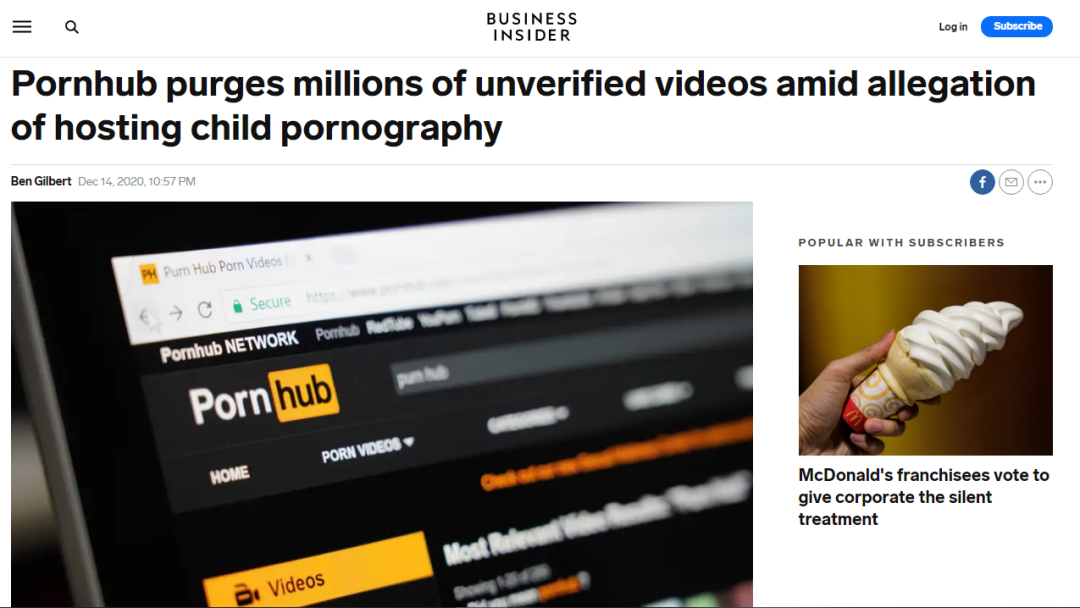 事情的起因,是前不久,《纽约时报》发的一篇硬核报道,里面指出P站存在大量非法或严重违反道德的视频内容。