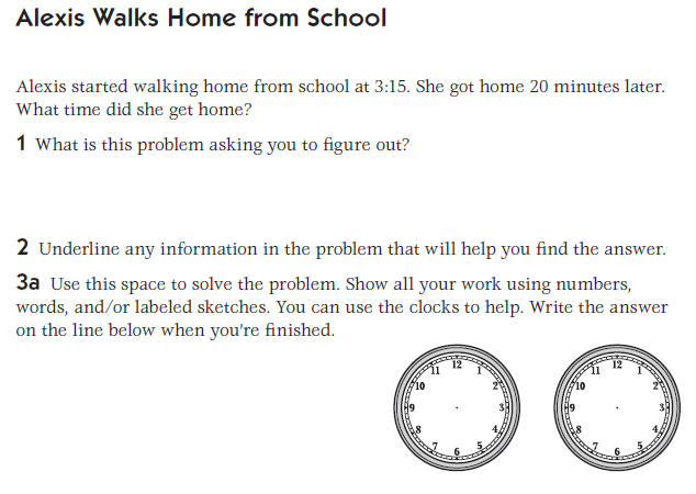 “A离开学校的时间是3:15,20min后到家,问孩子到家的时间。”