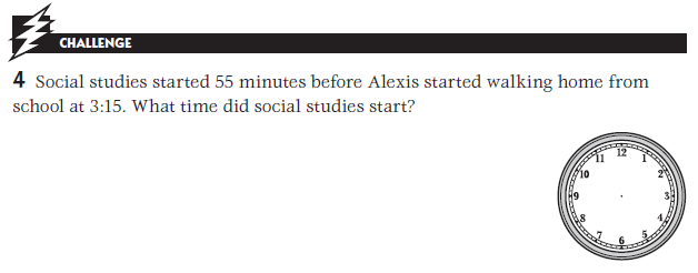 “社会课在孩子离开学校前55min开始,问社会课开始的时间。”