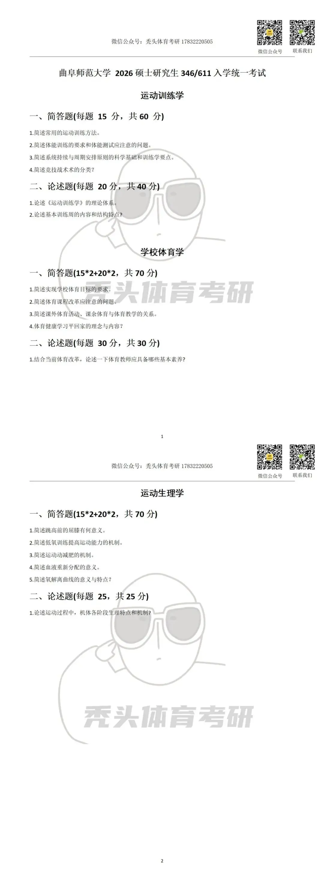 >26体育考研真题丨曲阜师范大学346体育综合初试真题(2026)