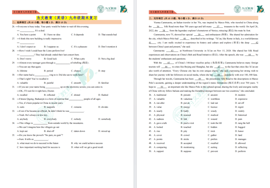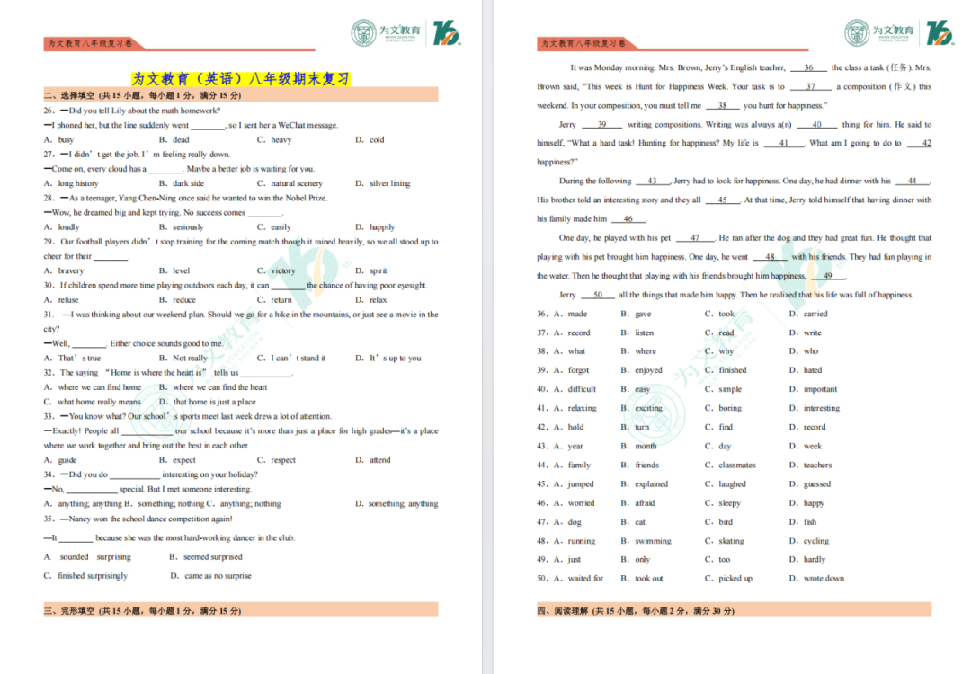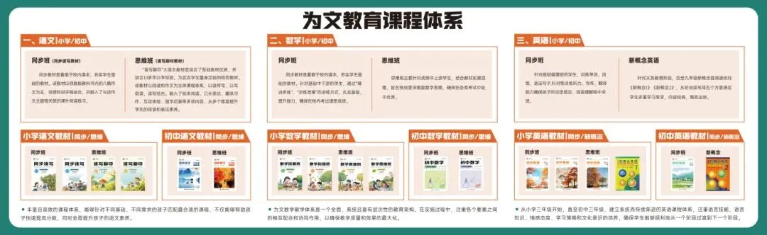 为文教育以“成就孩子,圆梦家庭”为使命,秉承“关爱学生,关注成长”的教学理念以及“诚信、拼搏、担当、创新、开放、感恩”的价值观,用心服务广大学子与家长。为文教育教研队伍实力雄厚,不仅有多年一线教学经验的教学名师,多年潜心研究的优秀教研员,更有特级教师每周参与并指导为文教育的教研活动。为文教育自主研发能力卓越,K12板块教学均采用自主研发的产品,系统化、本土化地为广大学子量身定制学科标准,形成课程与教材相互促进的学习体系。