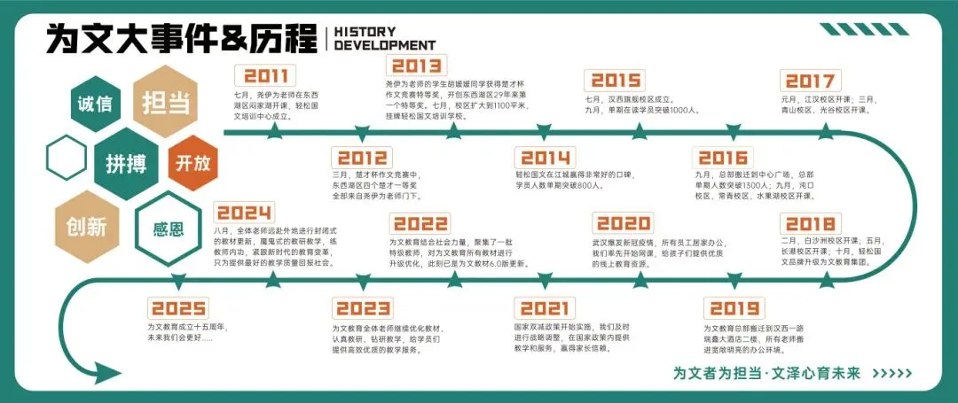 为文教育成立于2011年,我们专注小考、中考15年,助力广大学子考上名初、名高,荣获“全国教学质量标杆学校”称号。
