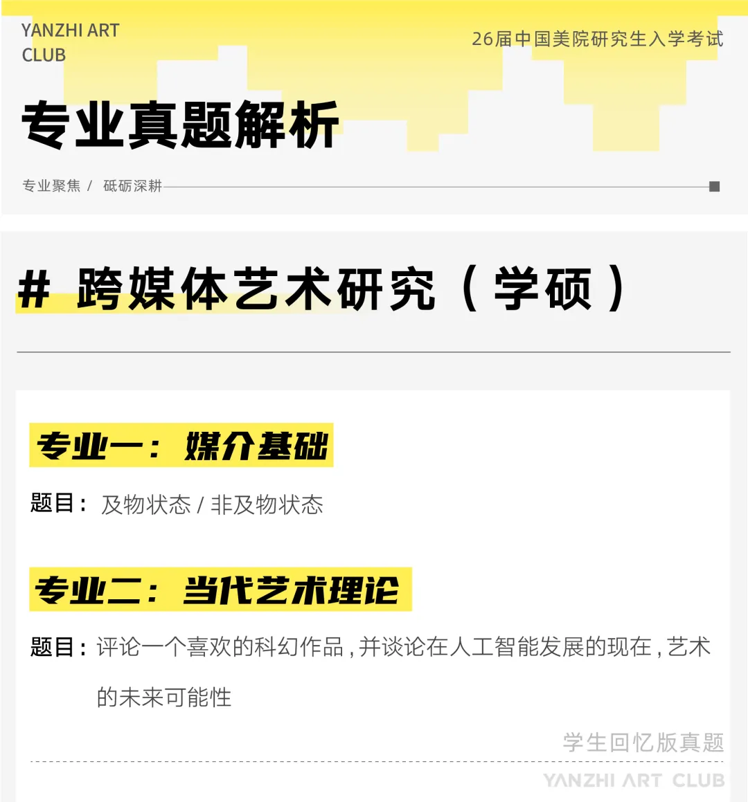 研至艺术|「2023考研」国美·跨媒体艺术学院——真题分析&初试总结