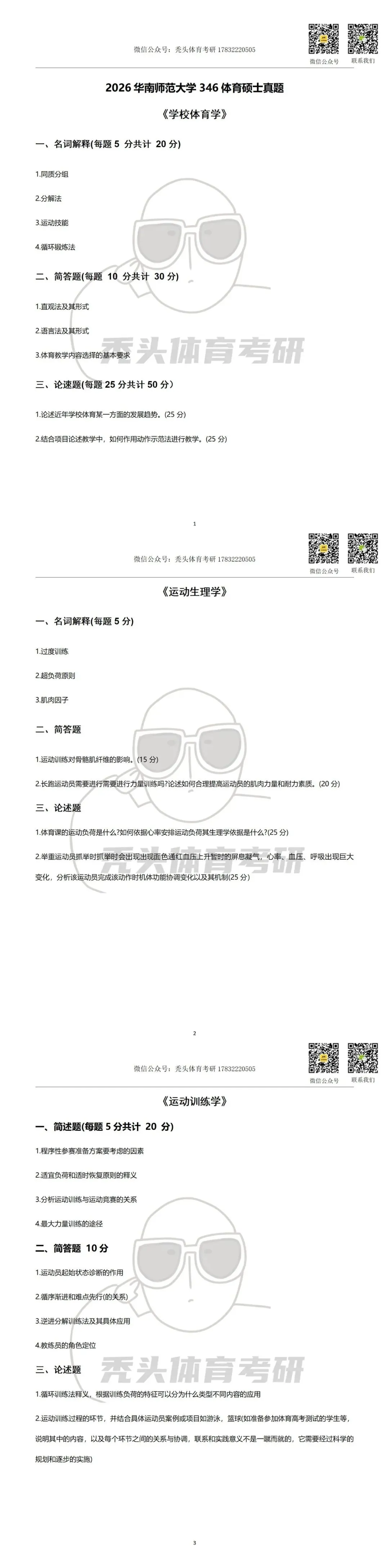 >26体育考研真题丨华南师范大学346体育综合初试真题(2026)