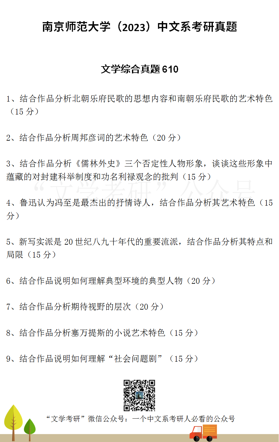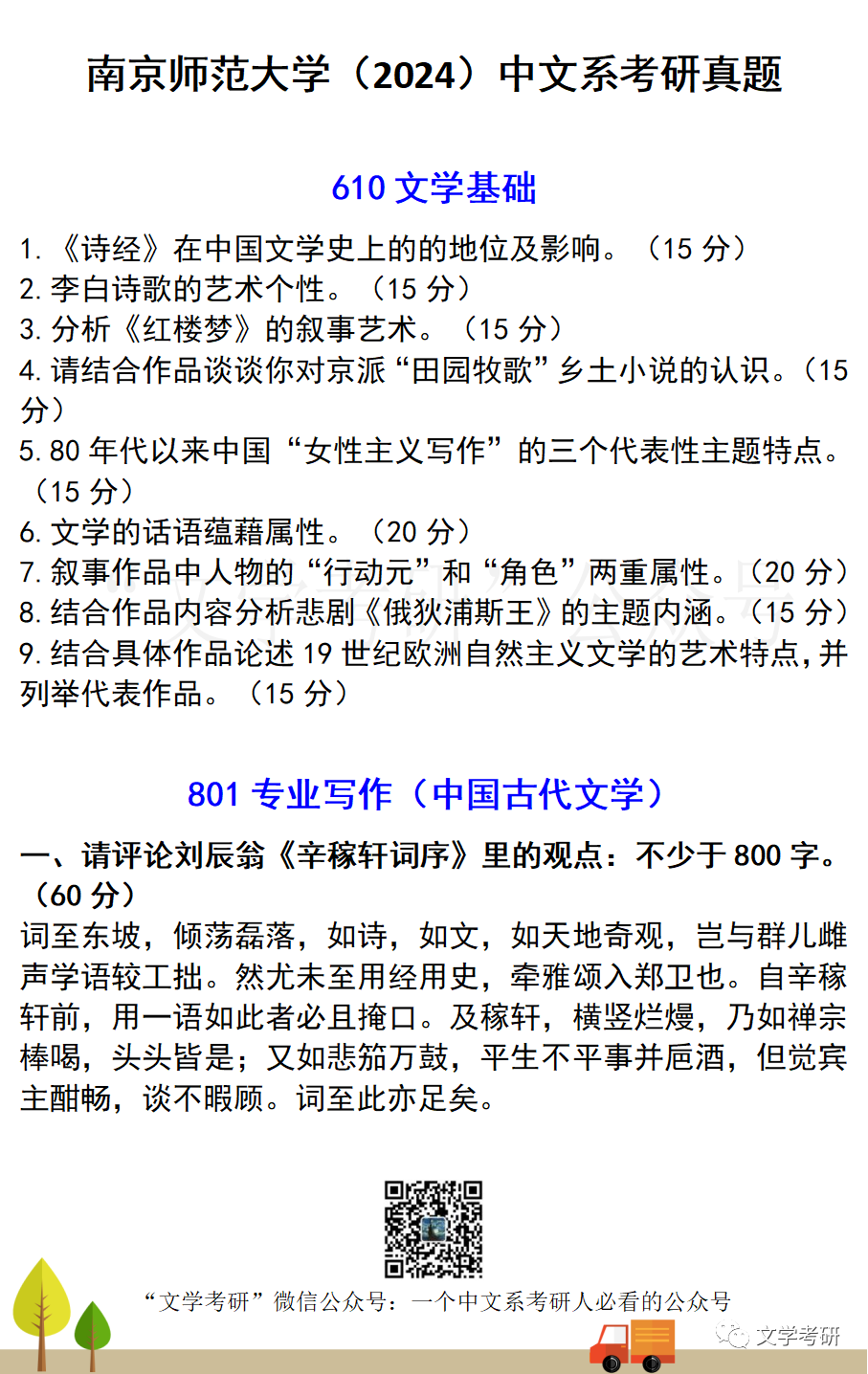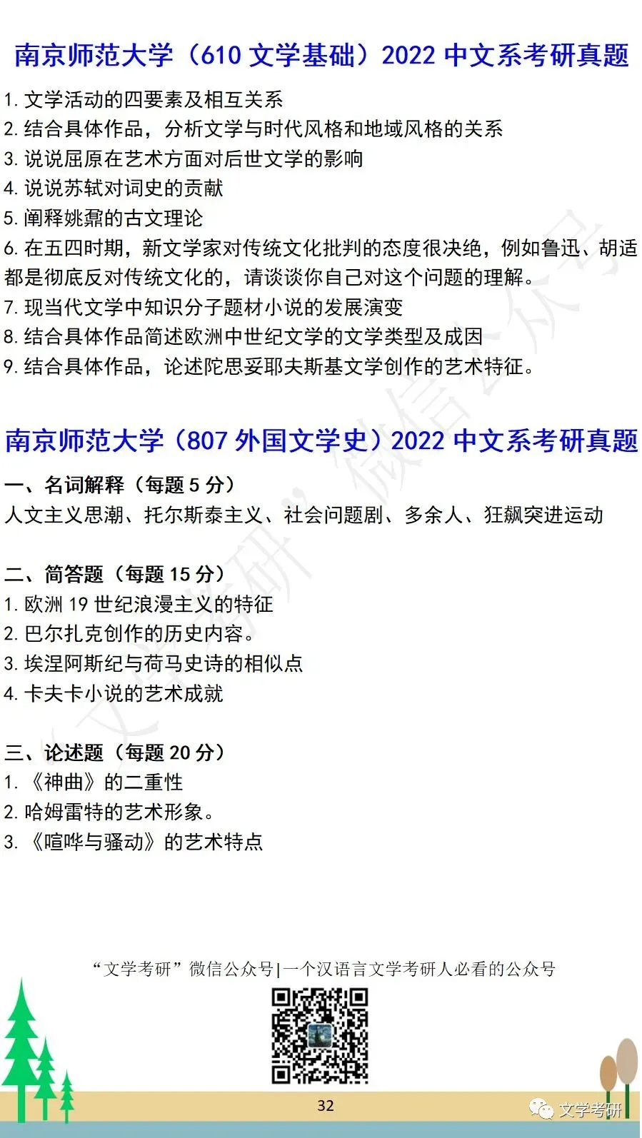 回复“真题”,可下载各大高校文学考研历年真题;