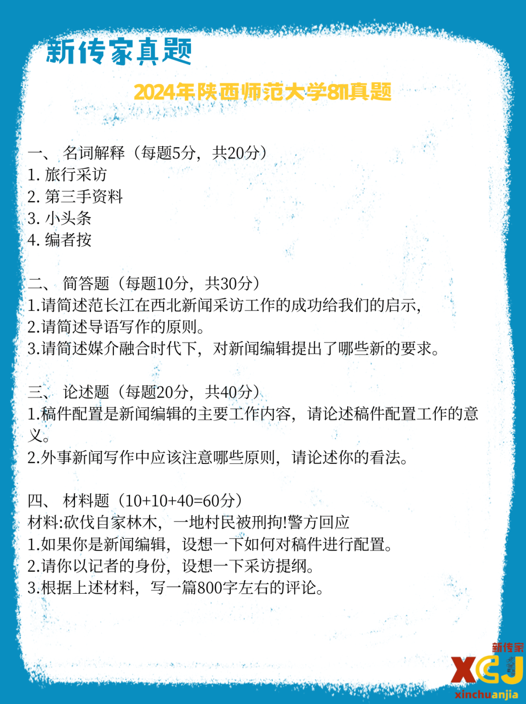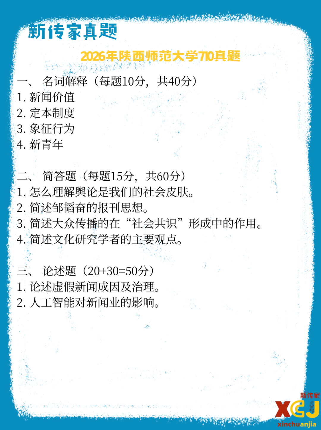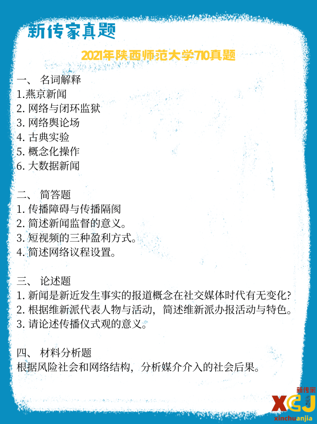 >【新传考研】陕西师范大学新传考研真题|2021-2026|学硕710+811|6年12份试卷