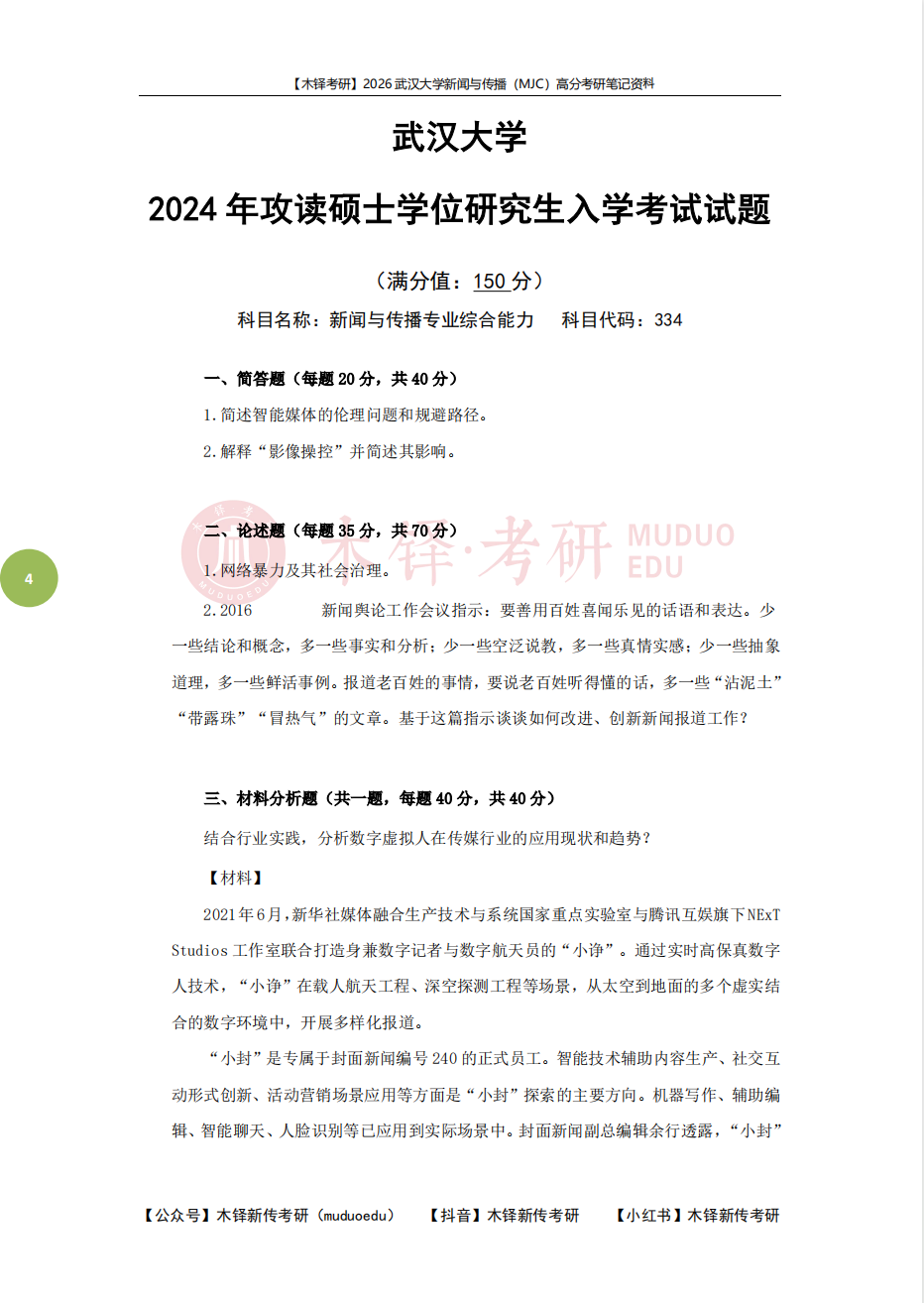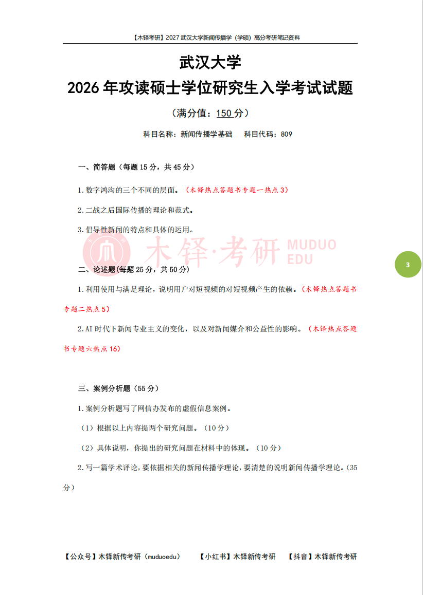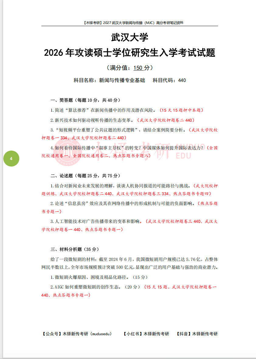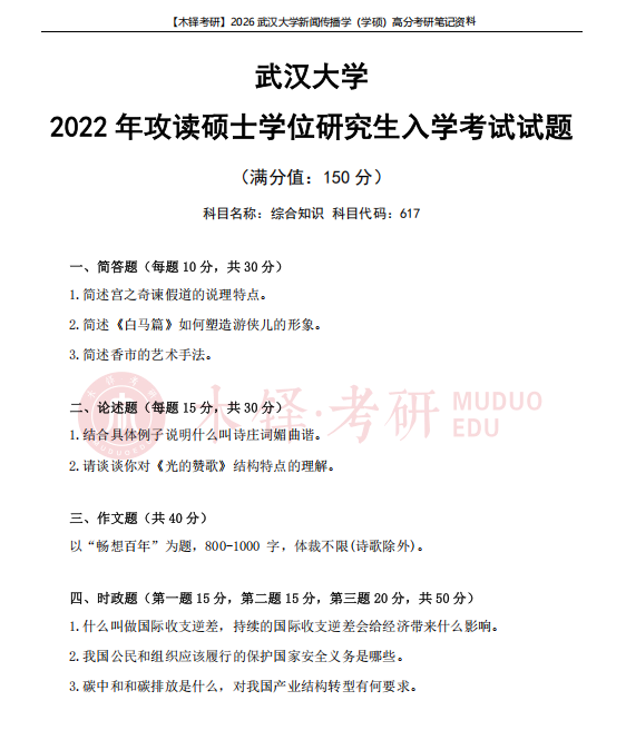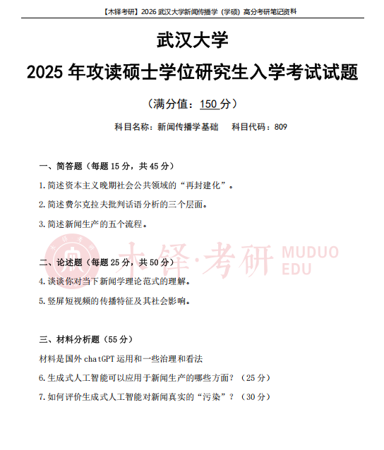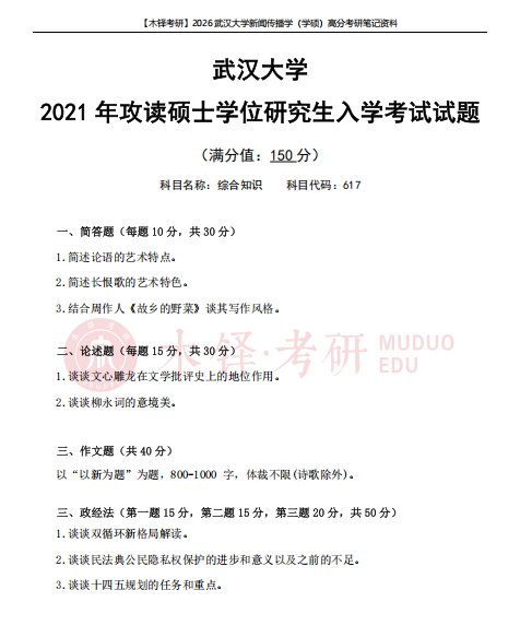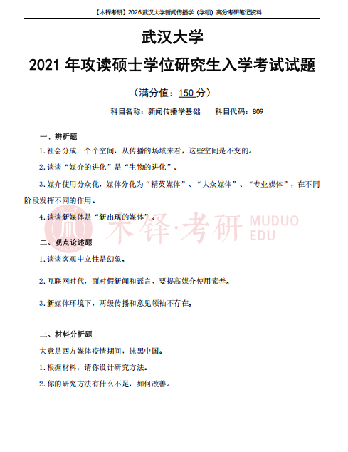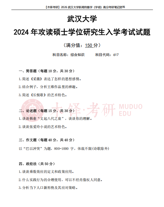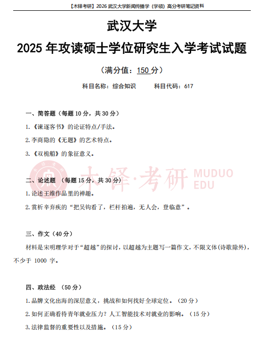 为了帮助同学们熟悉目标院校,铎老师整理了武汉大学学硕的近六年真题(2021-2025),助力大家成功迈出备考武汉大学的第一步!