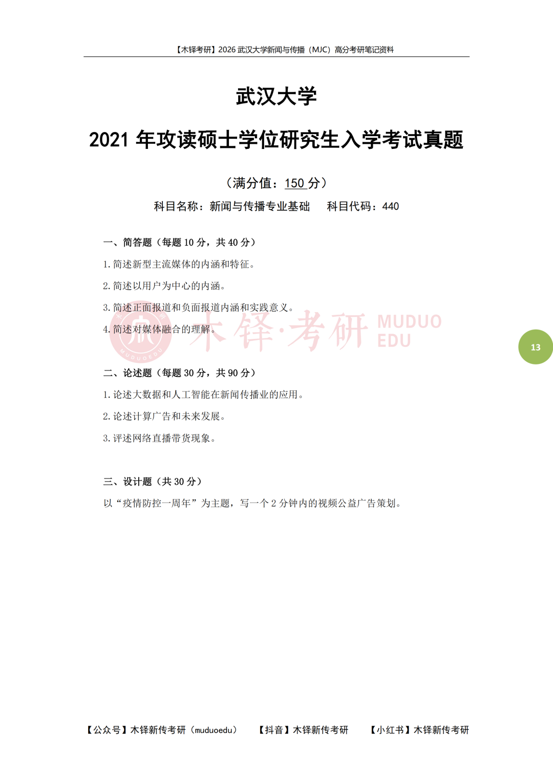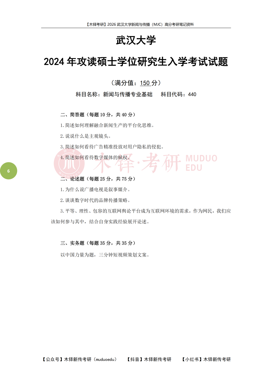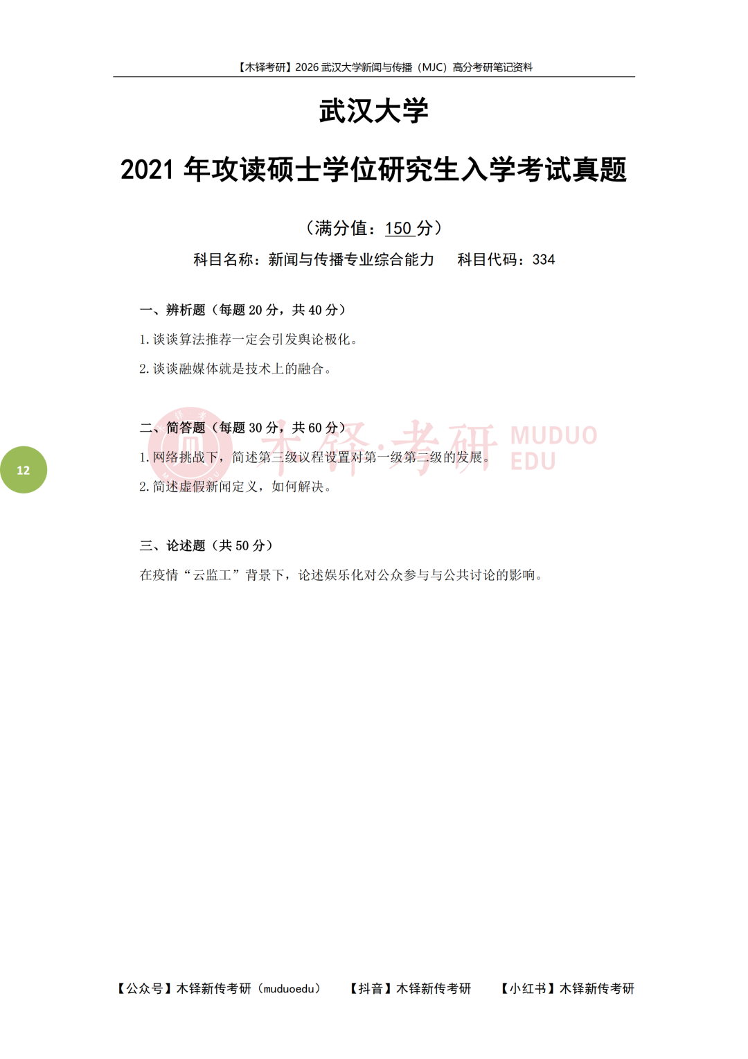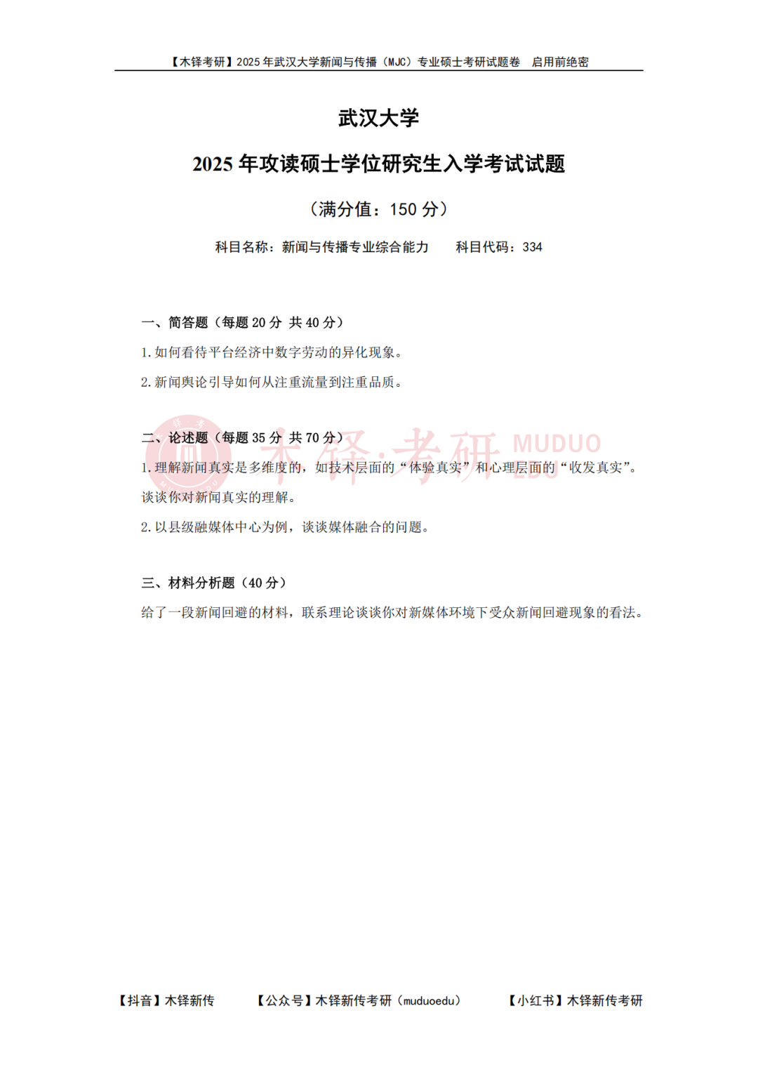 为了帮助同学们熟悉目标院校,铎老师整理了武汉大学学硕的近六年真题(2021-2025),助力大家成功迈出备考武汉大学的第一步!