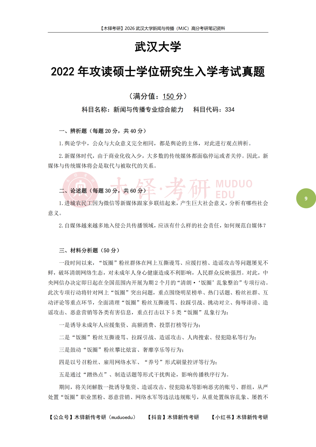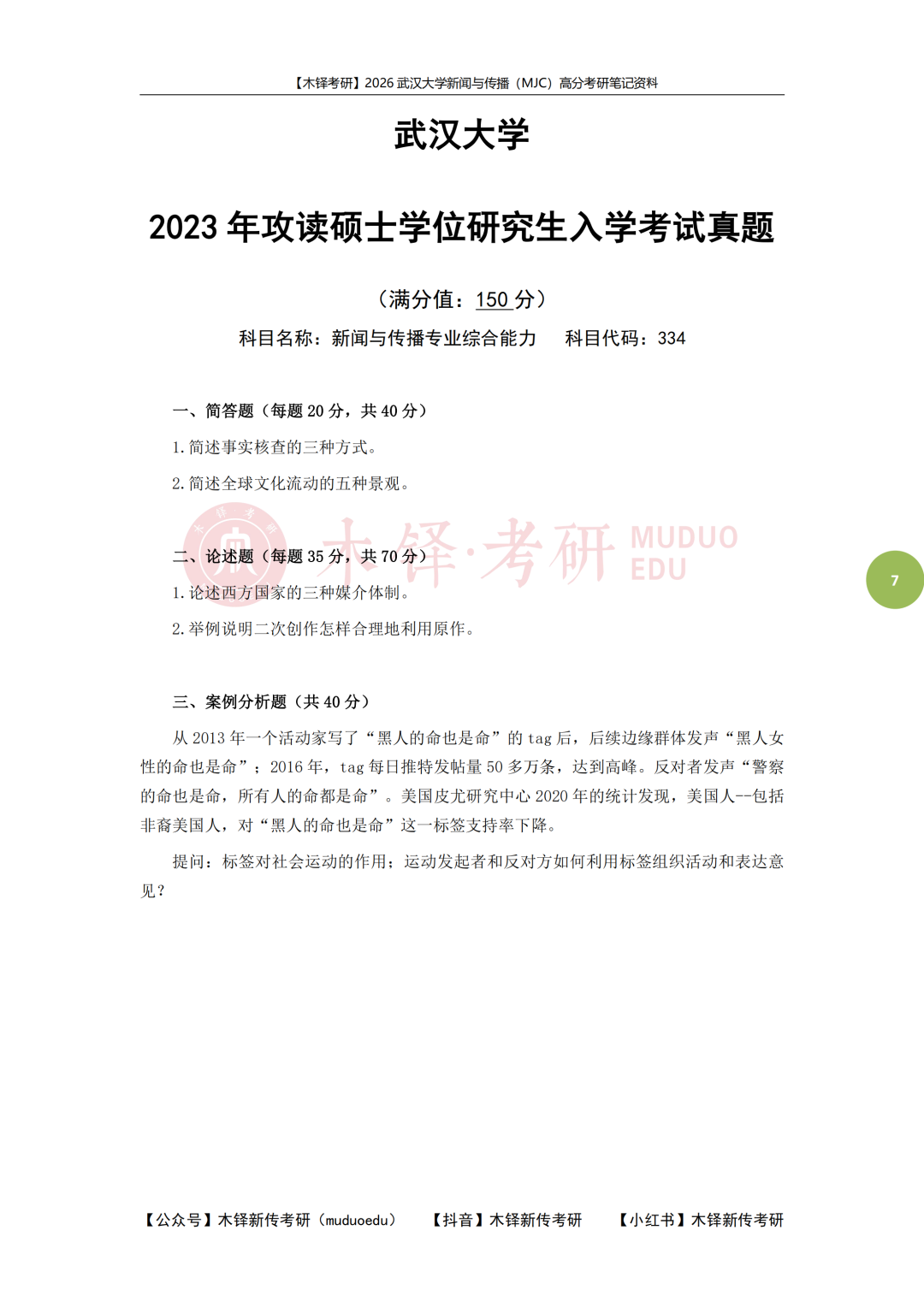 【2023年武汉大学MJC真题】