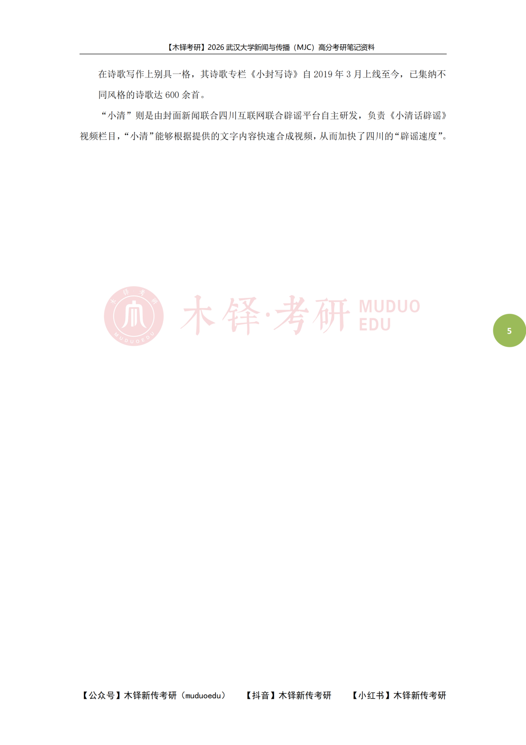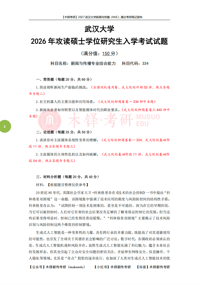 在木铎,曾7年培养6位武大状元。2026武大新传考研,我们继续陪大家稳稳上岸!