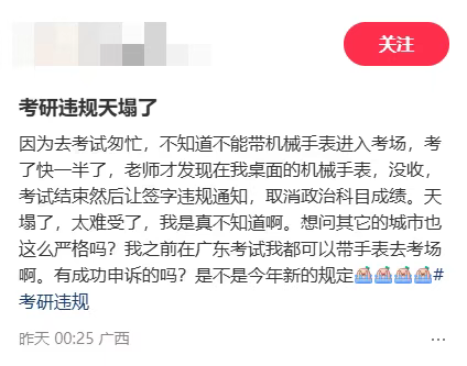 怎么真有宝子不小心把机械表带进考场!最近在网上刷消息的时候,看见有宝子不小心把机械手表带进考场,结果被老师发现,然后手表被没收,成绩被作废的消息。