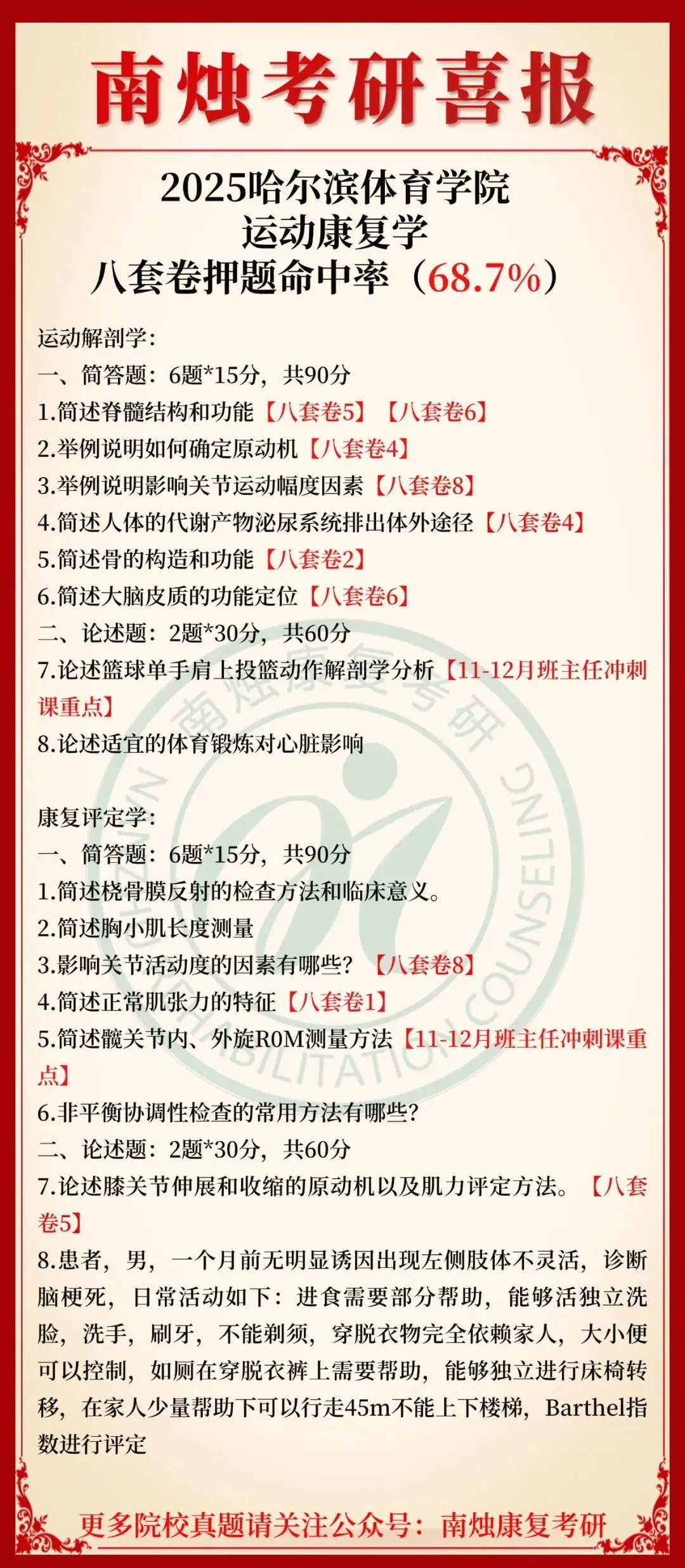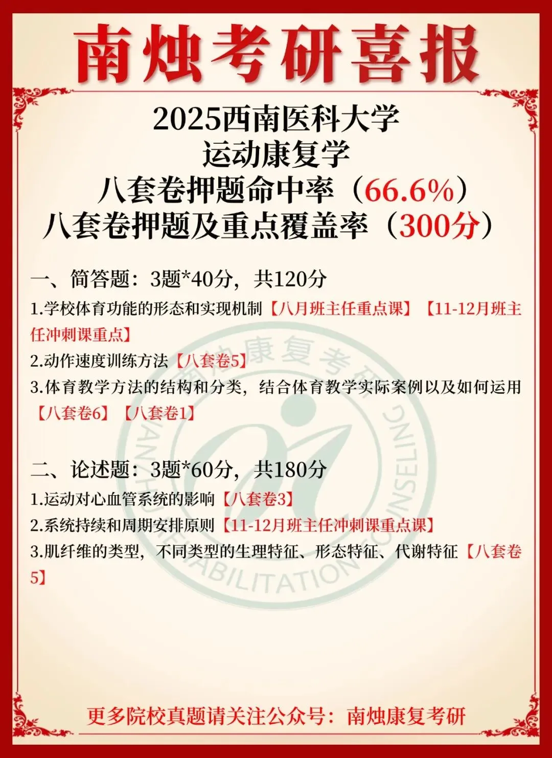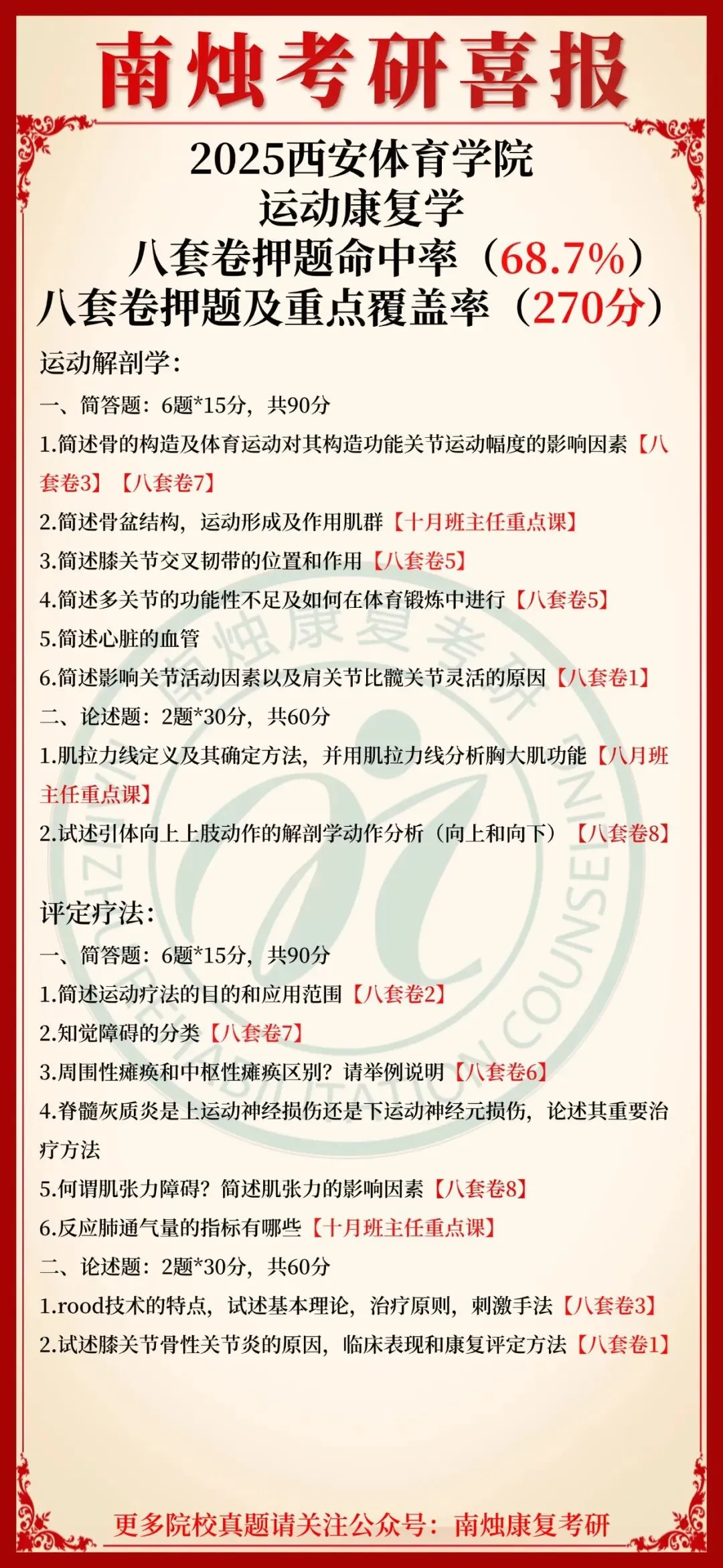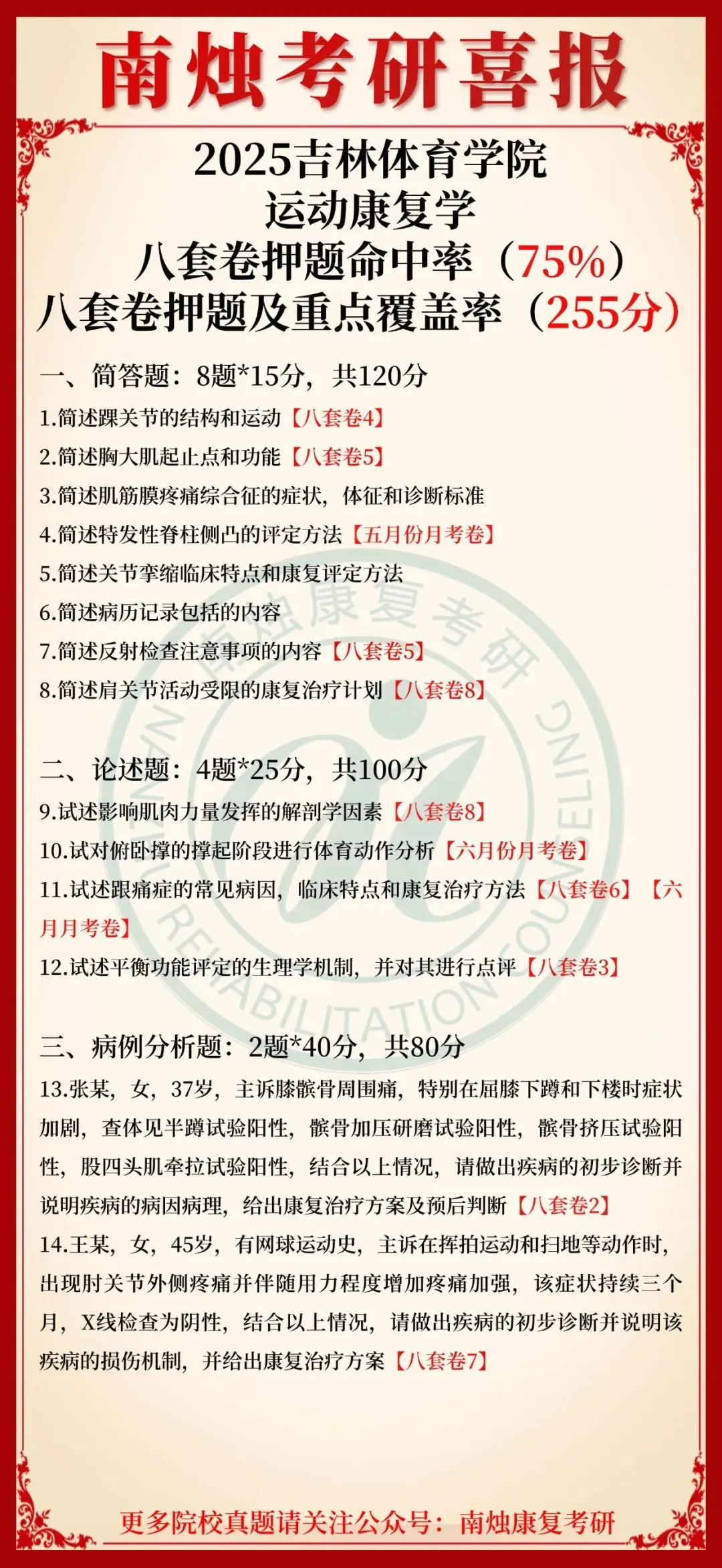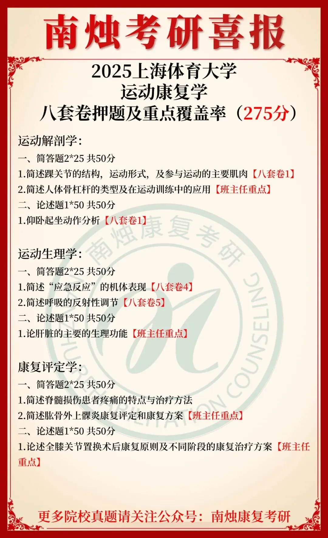 小编也在此祝愿各位康复考研考生能着眼于当下,脚踏实地,全力以赴。当春暖花开日,便是金榜题名时,此战定能得偿所愿,顺利上岸,加油!