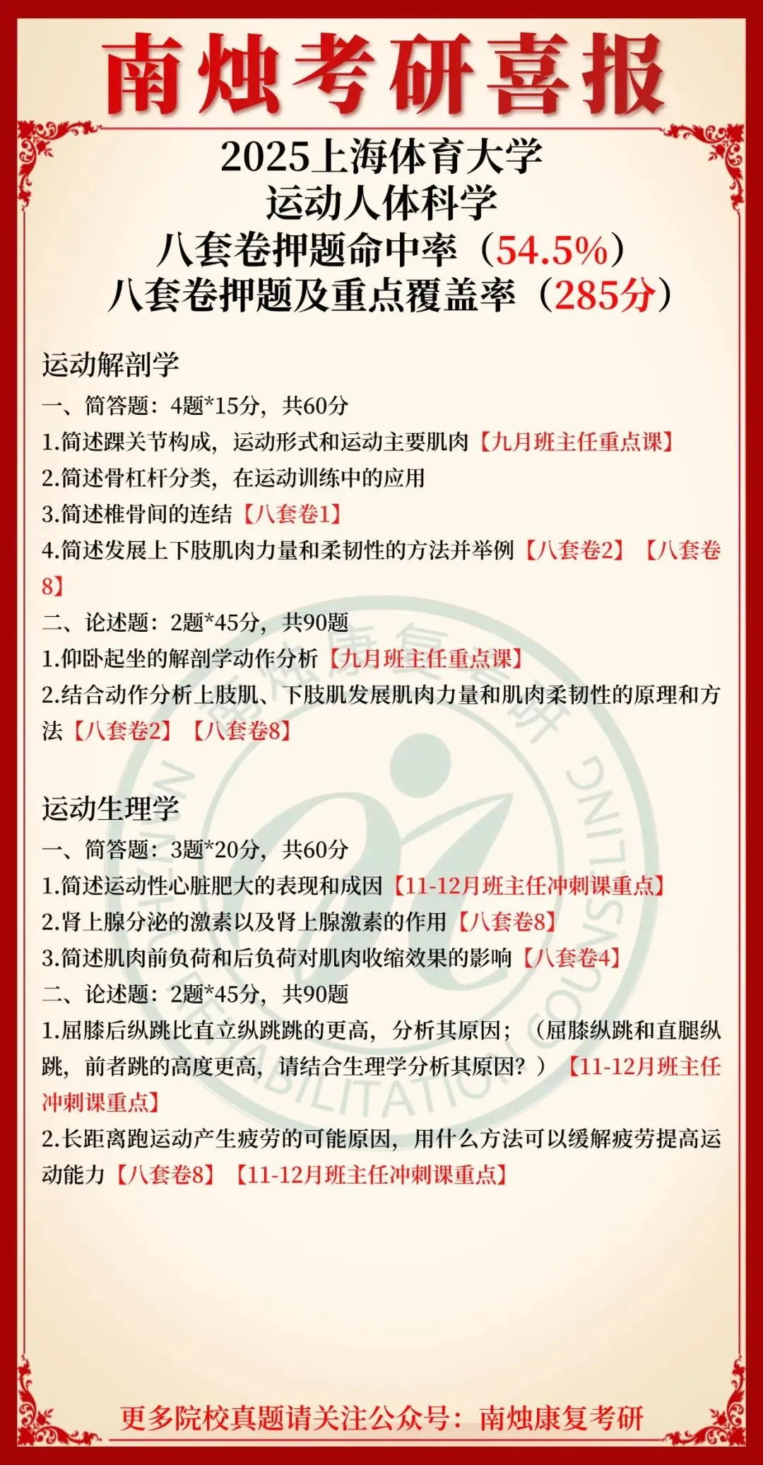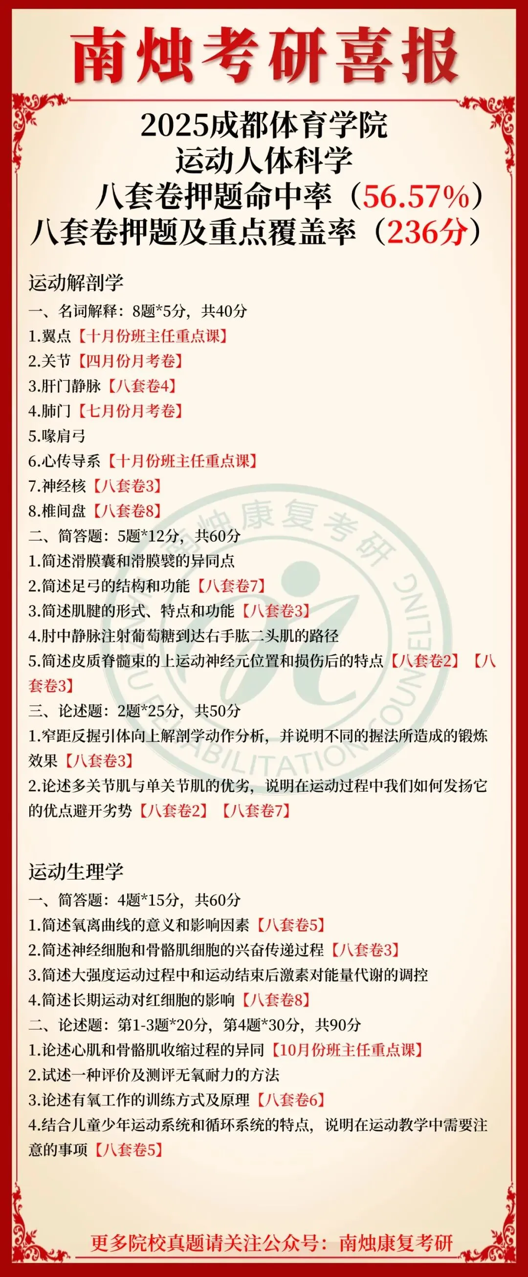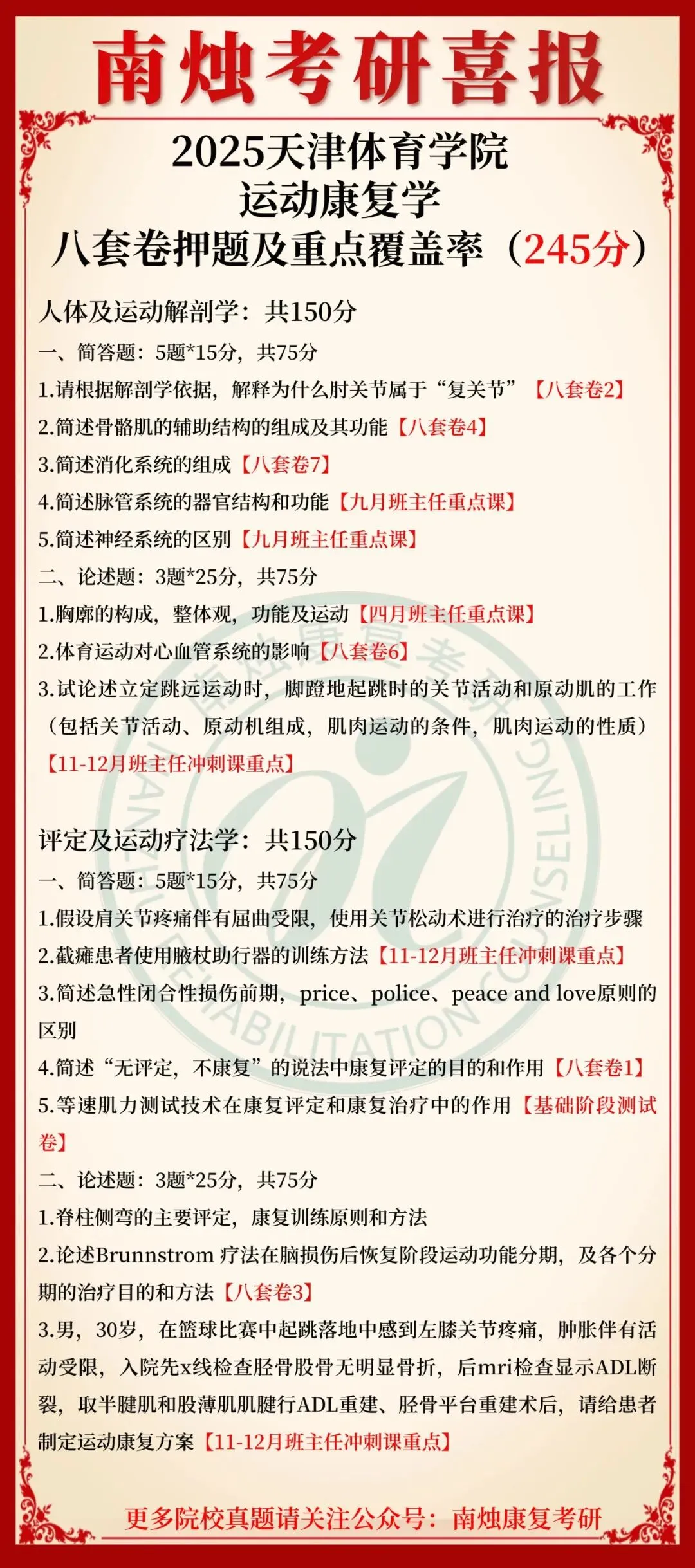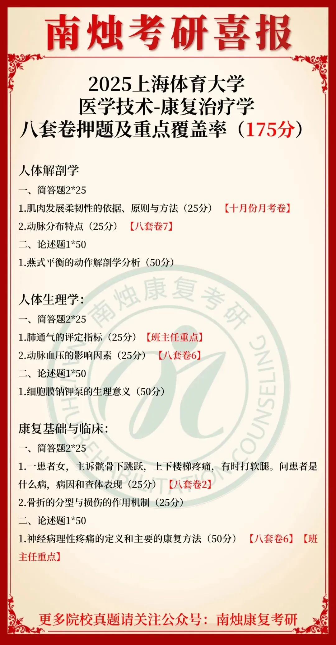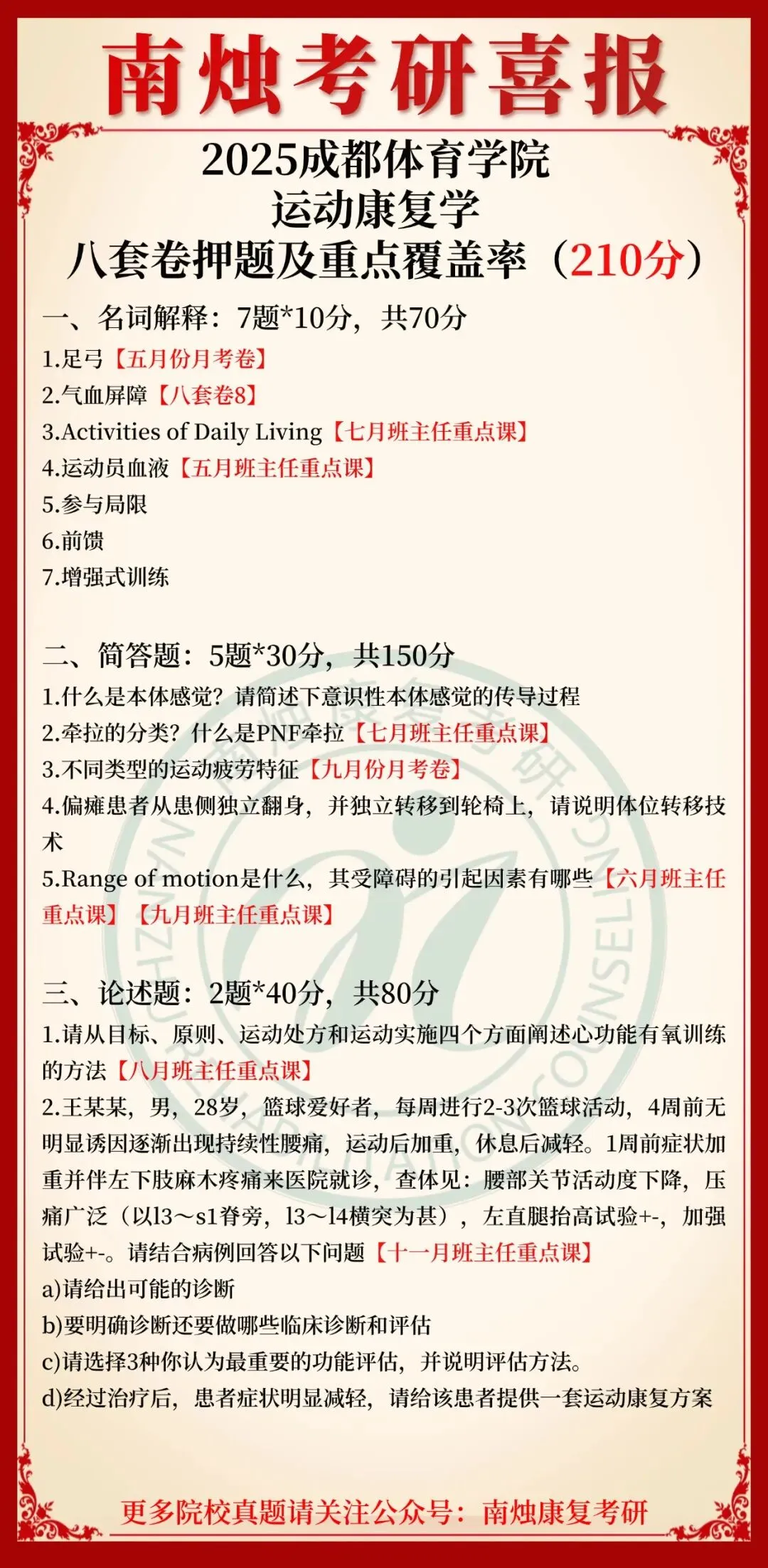 小编也在此祝愿各位康复考研考生能着眼于当下,脚踏实地,全力以赴。当春暖花开日,便是金榜题名时,此战定能得偿所愿,顺利上岸,加油!