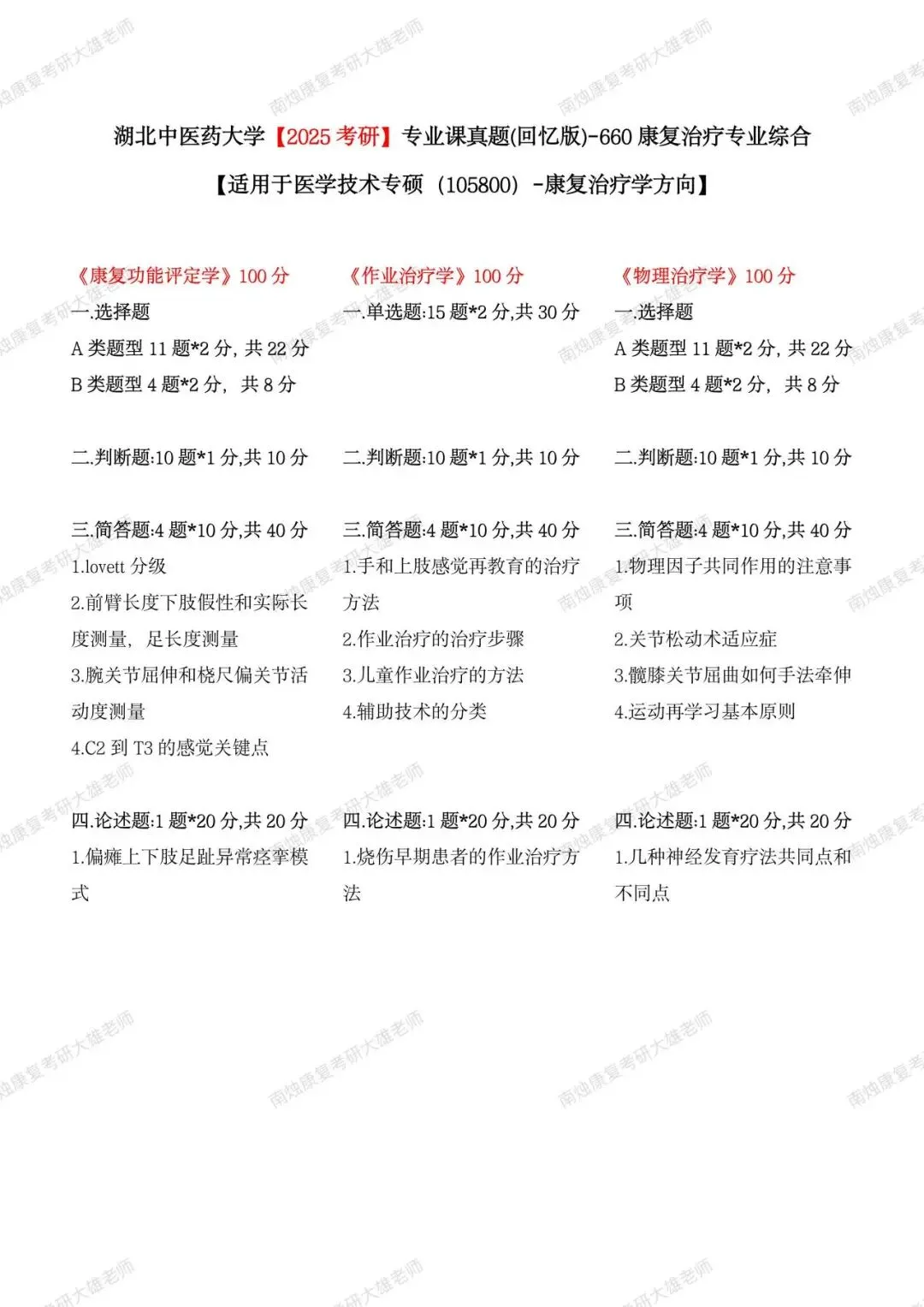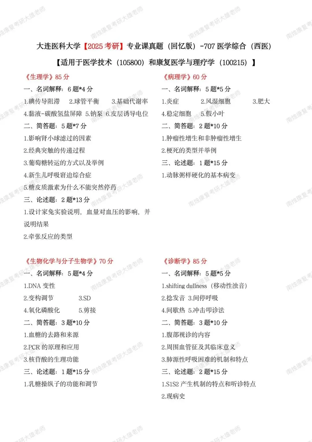 康复各院校高分上岸考生担任授课老师