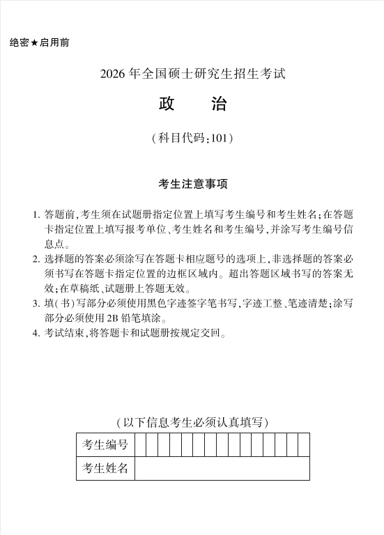 今天给大家准备的是:2026考研政治真题和答案pdf