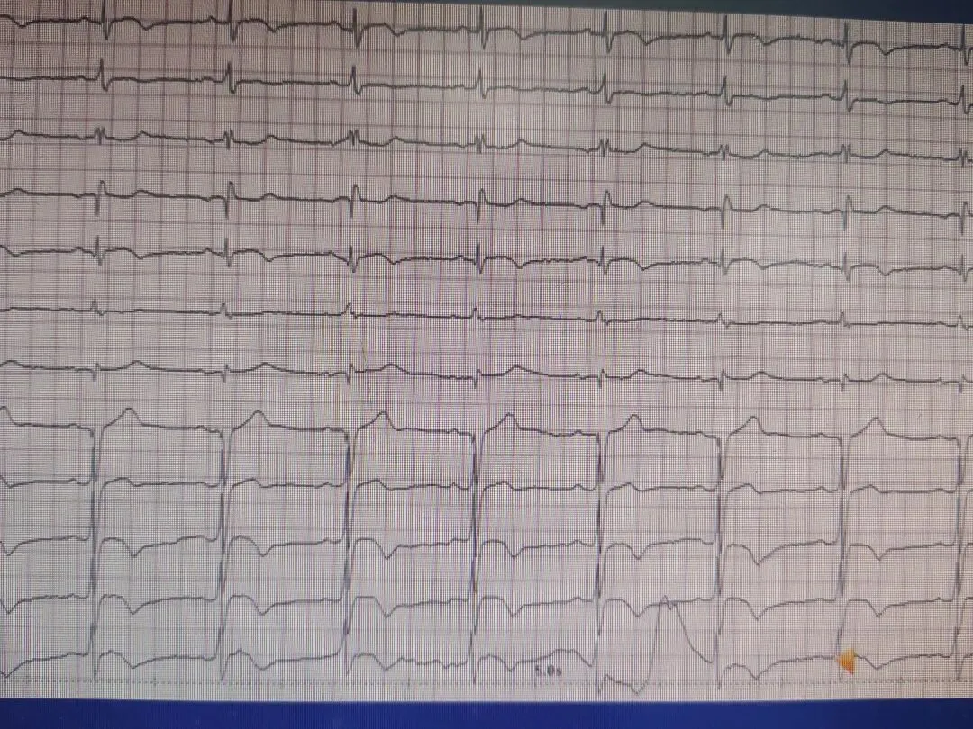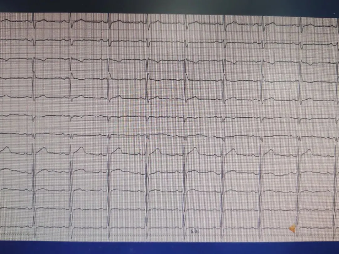 入院当天查心电图,T波双向 ,有胸部不适,有动态改变。复查心肌酶升高,造影见左前降支近端重度狭窄。