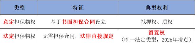 3. 例外:留置权无需担保合同,为法定担保物权。