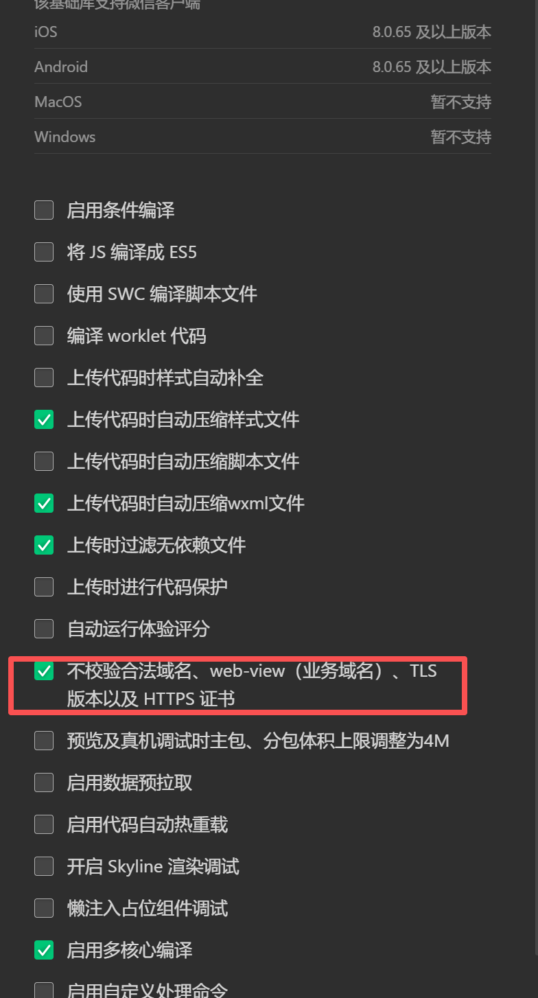 小程序创建2个页面,一个index,一个是test跳转用的。test是我们跳转的页面。确保app.json 的页面存在。这个时候想测试效果。需要关闭校验https和业务域名,方便调试。在微信开发端就可以实现跳转。完成2个步骤。这样就可以测试到cocos 里面可以借助jssdk 实现跳转小程序页面的目的。代码并不多,实验过程非常容易能实现出来。关键的地方是借助webview 搭配jssdk 实现跳转小程序页面了。webview可以载入cocos 导出的h5小游戏。h5借助jssdk提供的能力可以和小程序进行交互。这个实验在没有业务域名和https校验下实现。好了,今天实验就到这里。