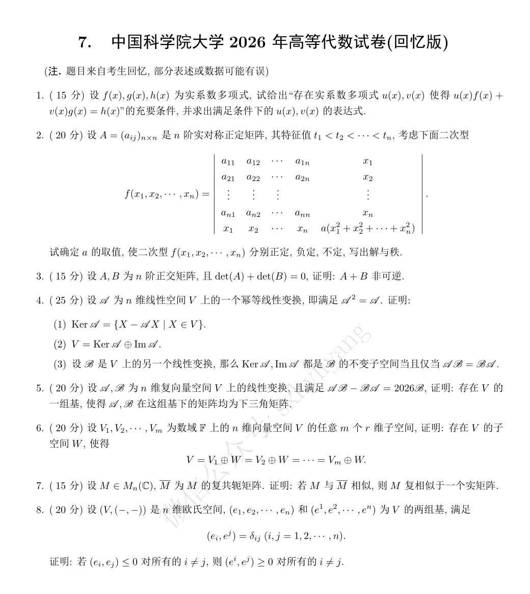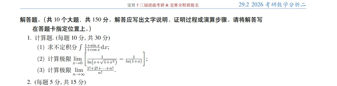 中科院数学分析2,4,5,6,7,9,10都是课程讲义原题, 1(1)直接是我们的考前最终模拟押题卷一原题. 高代压轴6,7,8都是课程讲义原题. 这套数分题作为非数学cmc考前模拟训练题非常不错. 历年来中科院题目都较为简单, 政治英语成为了决定性因素, 读者需要正确备考.