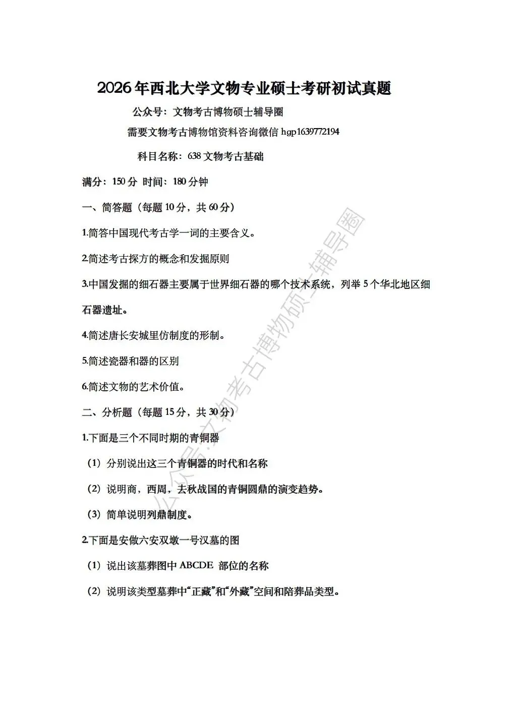 >第一讲2026年西北大学文物考研真题答案讲解课视频