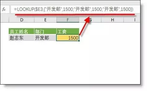 =LOOKUP($C3,{"开发部",1500;"开发部",1500;"开发部",1500})