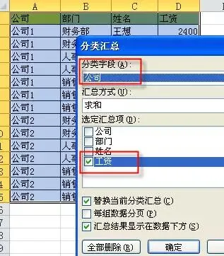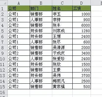 例:如下图所示的工资表,要求按公司和部门进行汇总。