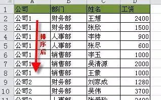 第1步 对源表按公司和部门进行排序。这是分类汇总的前提条件。排序后如下图所示。