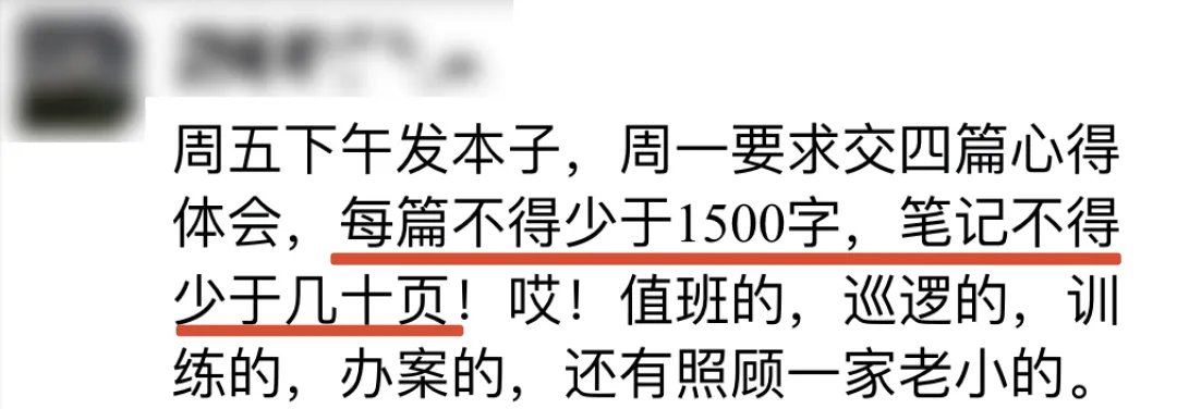 “尤其是基层干警,承担着繁重的办案任务,如果硬性要求他们抄几千字的笔记,这是徒增基层负担,与教育整顿的初衷背道而驰。”
