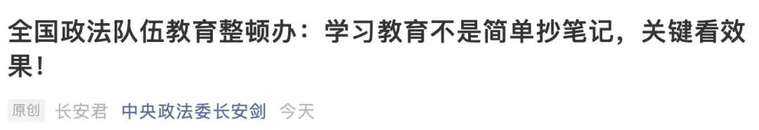 看到这里,就不得不再提到中央政法委长安剑发布的《全国政法队伍教育整顿办:学习教育不是简单抄笔记,关键看效果!》一文,