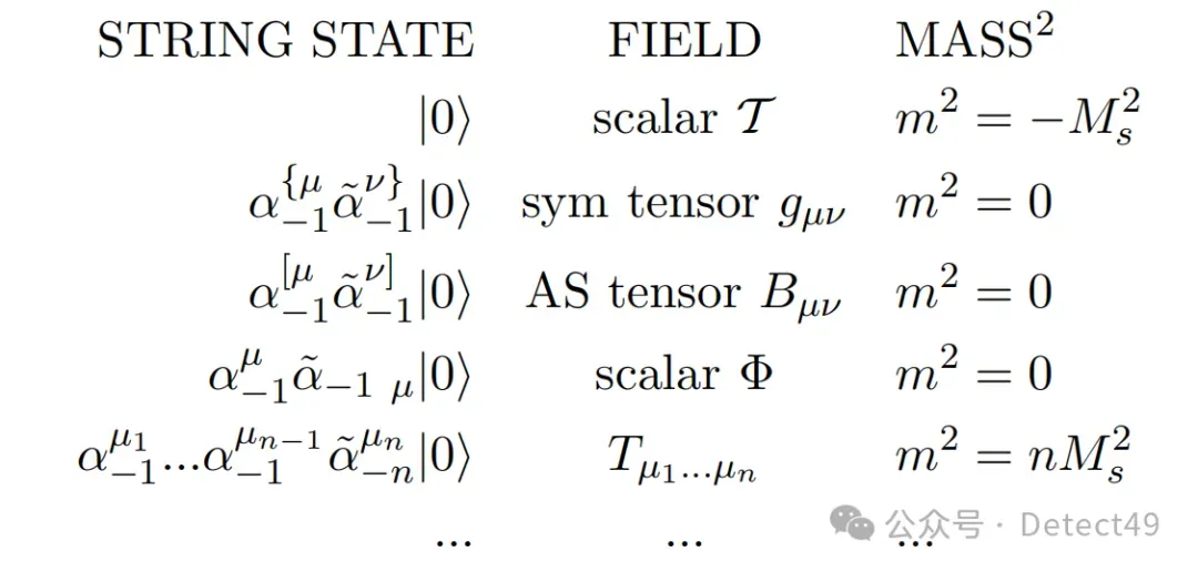 通过对D维闵氏时空下自由玻色子的弦论作用量(free boson CFT)量子化(写出运动方程,即2维波动方程,解为左行波和右行波的叠加。对左行波和右行波的系数进行量子化。),我们发现对易关系类似产生湮灭算符。但直接量子化会出现负模态或者负能量态。所以其中我们也要gauge掉2d 共形对称性。最后我们得到闭弦的谱为