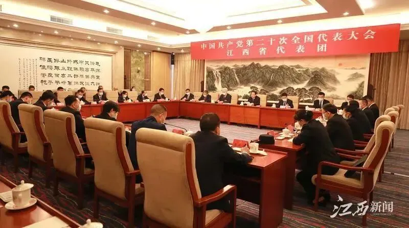 10月15日,党的二十大江西省代表团在代表住地举行第一次全体会议