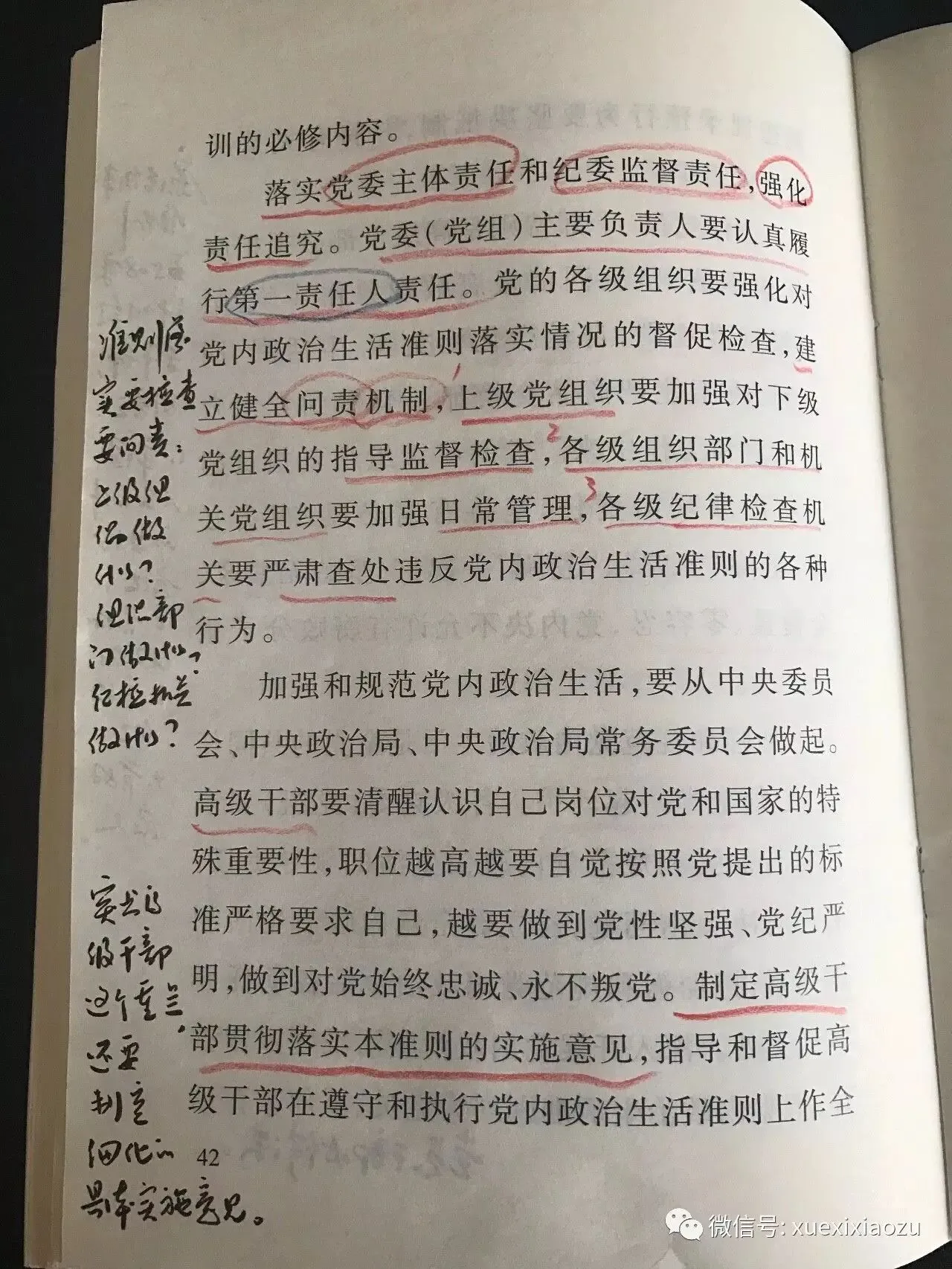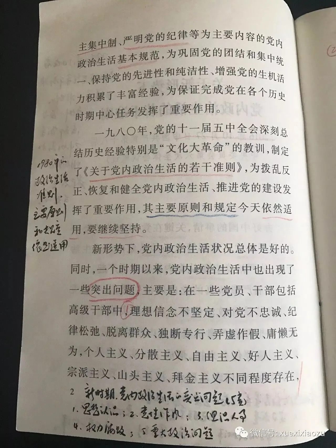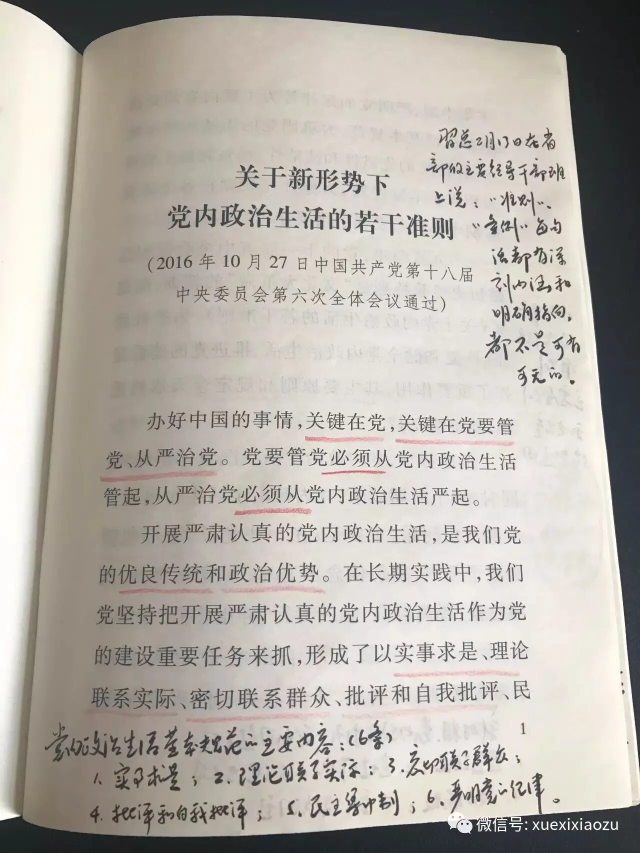 十八届六中全会上,通过的《关于新形势下党内政治生活的若干准则》和《中国共产党党内监督条例》两个重要文件,是全面从严治党的重要规范。如何学习这两个文件,是全体党员干部都要加以重视的。学习小组今日推出一位组员学习《准则》的笔记,与大家一起学习。