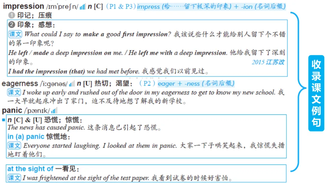 总之,《新高中英语词汇学习笔记》的词条标注符合新课标的要求,基于教材但又高于教材。