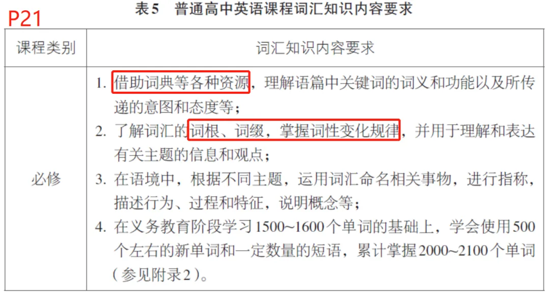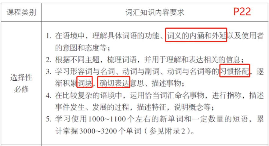新课标对高中课程的词汇知识和学生的语言能力提出了以下要求: