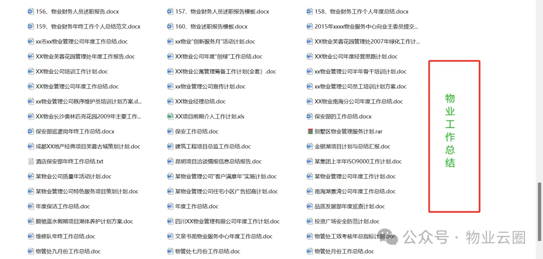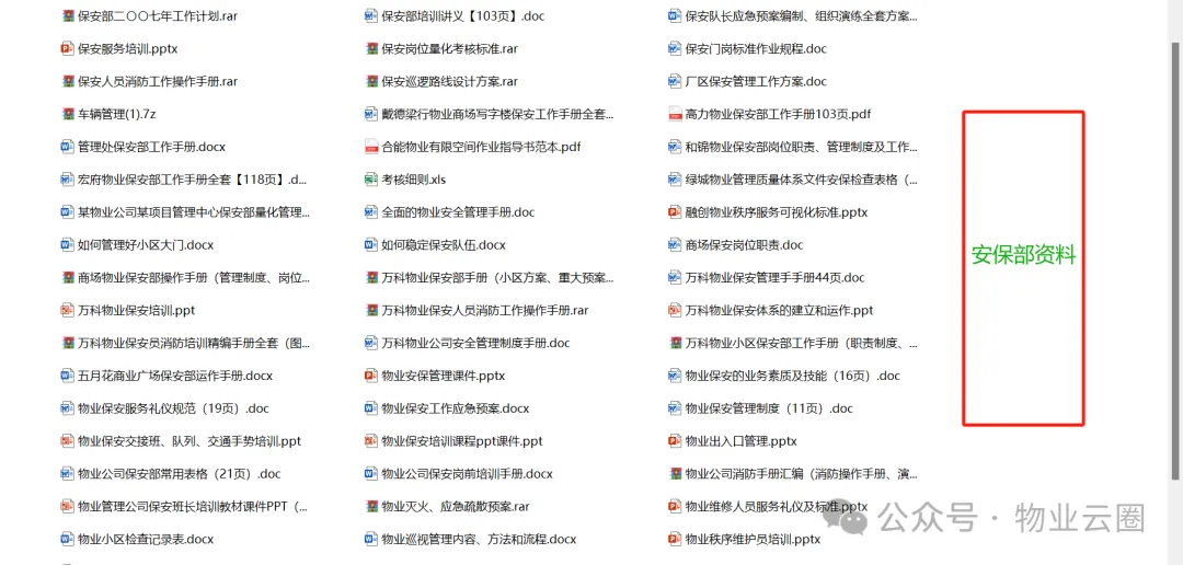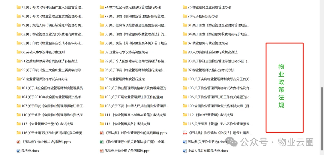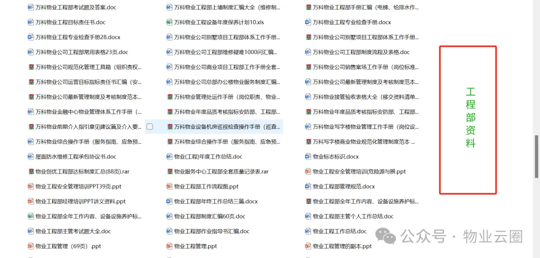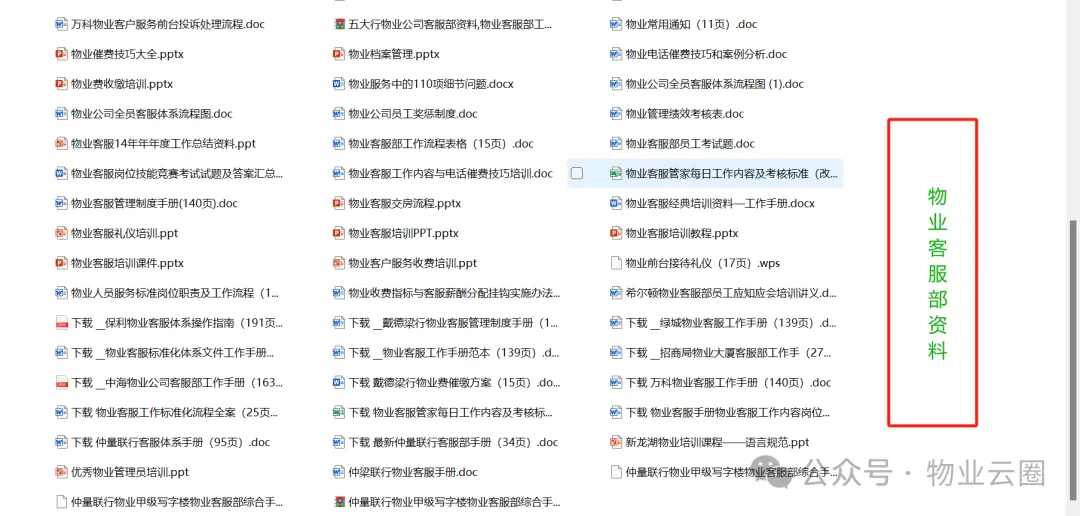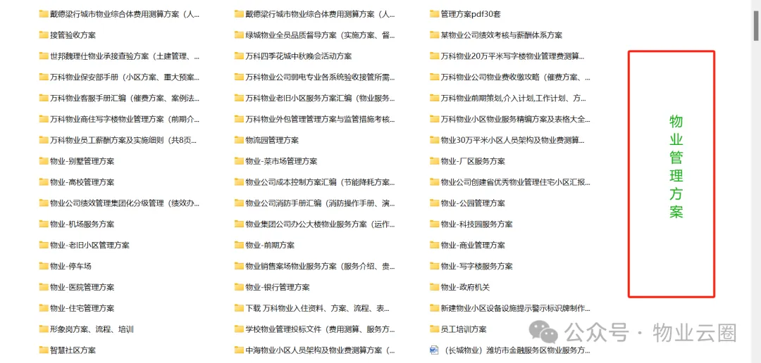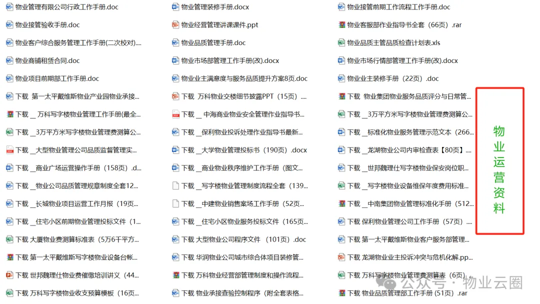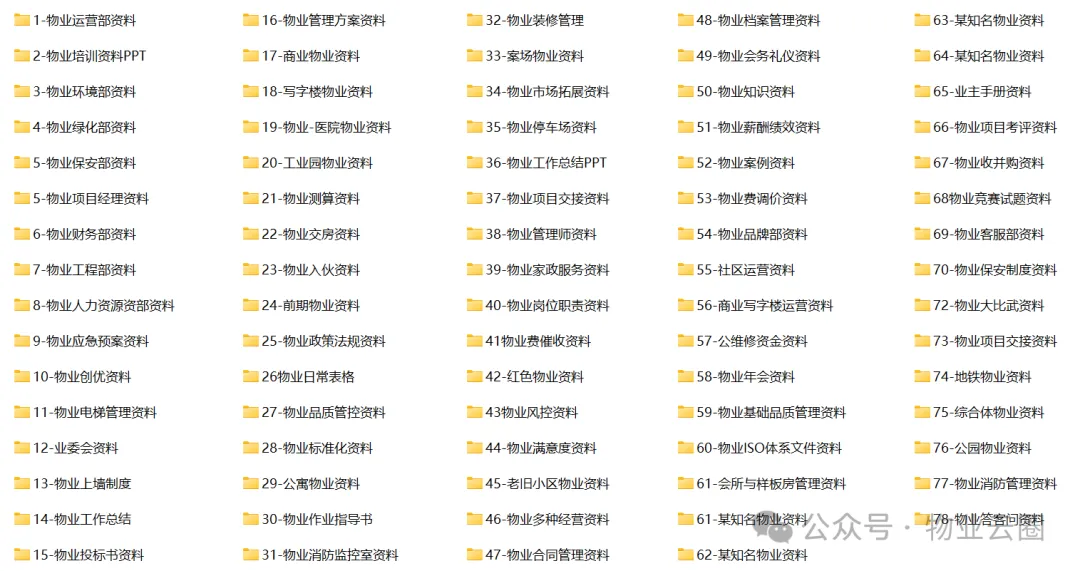 物业大运营各种资料分类78类,文件14G,各种资料完整实用。