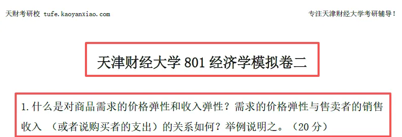 2.简述需求收入弹性和需求交叉价格弹性的含义及其现实应用(20分)与模拟卷(二)第1题考点基本一致,卷子截图如下:
