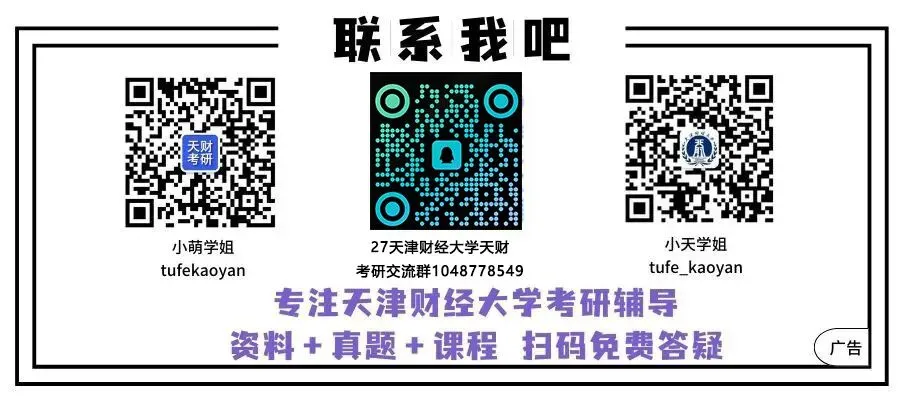 由于天津财经大学近年来不对外公布自命题专业课考研真题,回忆版真题均为考完同学回忆我们整理而成,所以仅展示命中部分真题。如果和真实考题有出入也欢迎各位同学指正,希望大家一战成硕!
