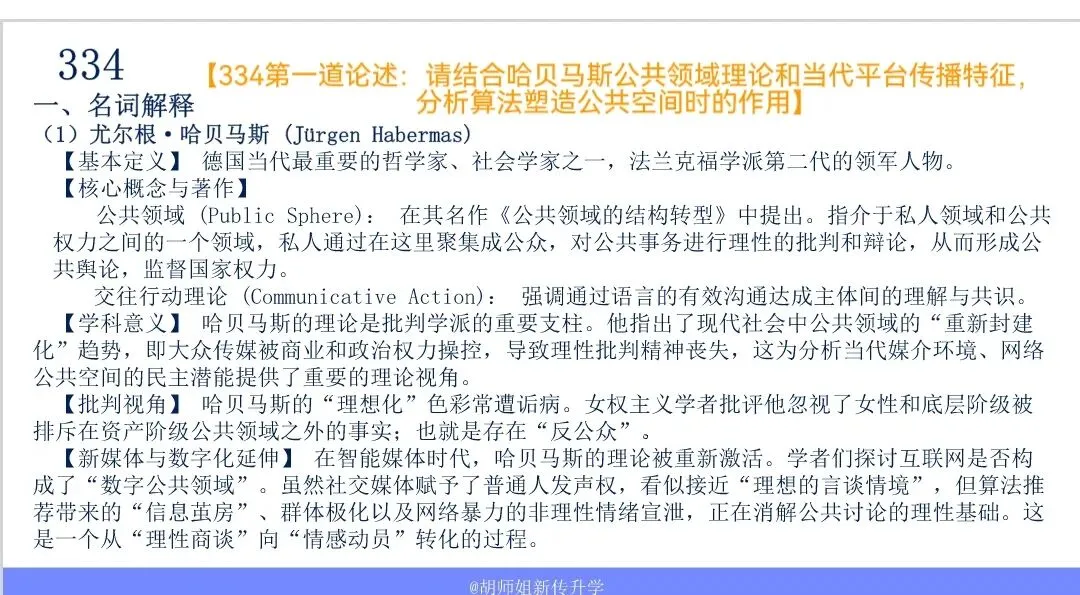 答题关键:哈贝马斯的理想模型强调“理性、批判、普遍准入”。而算法遵循“流量、点击、个性化”。答题的核心在于论证技术逻辑如何异化或重构了公共领域。