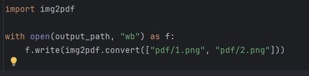 from PIL import Imageimage = Image.open("pdf/1.png").convert("RGB")image.save("pdf/11.pdf", 'PDF', resolution=100.0)