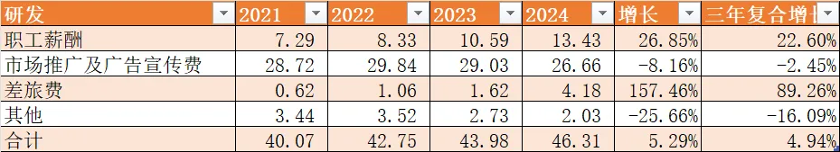 从研发费用的明细更可以看到这点,主要职工薪酬和差旅的增加。推广费还是下降的。