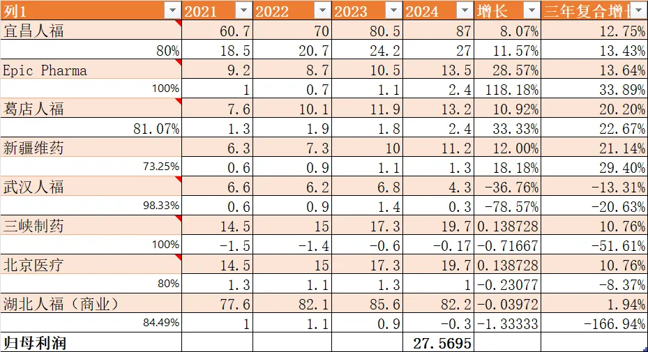 宜昌人福是最重要的控股公司,2024年利润27亿,公司有80%的股份,另外20%是国药控股,而国药控股是神经类药品的批发商,所有有协调效应。