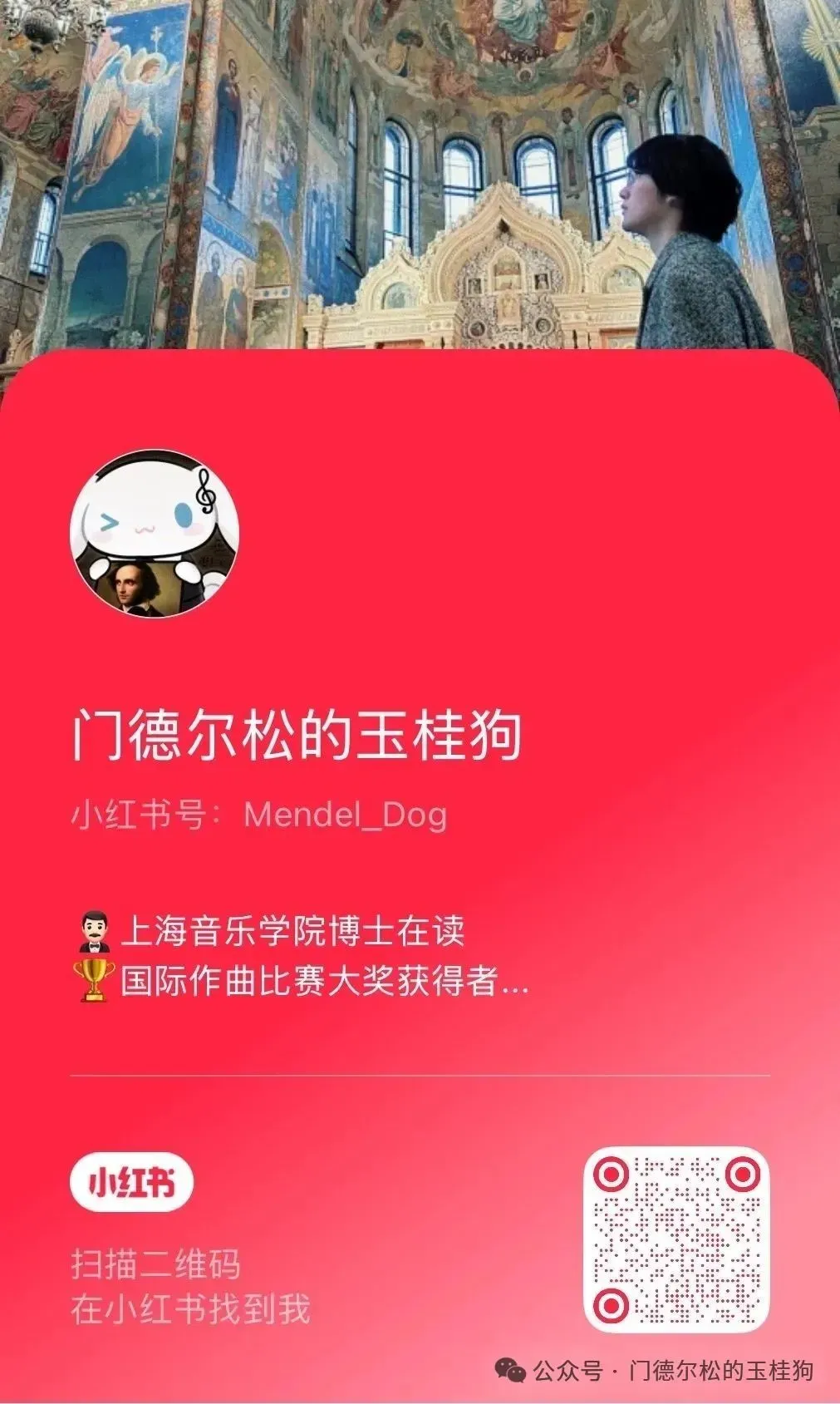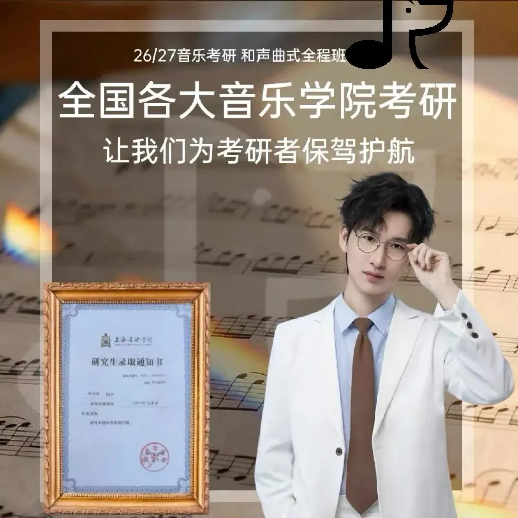 扫下方二维码添加和声曲式老师微信(Mendel_Dog),任何课程问题都可以详询,史论(音乐史)教学辅导请单独私信(目前已合作了上海音乐学院的专业老师进行相关辅导)。并且如果有需介绍个别院校的研究生的联系方式也可通过我哦~李卓铭,上海音乐学院博士生。作为青年学者,他在《黄钟-武汉音乐学院学报》《音乐爱好者》等国内音乐专业核心期刊及专业期刊发表音乐分析领域论文。并且论文2023年入选作曲技术理论与中国当代音乐创作研究学术研讨会。2025年获得上海音乐学院第二十届“奏鸣”研究生艺术节优秀论文奖,第十四届中国—东盟(南宁)音乐周音乐论文征集评选-优秀奖。2024年,他的钢琴独奏《Dreaming》荣获“Sound Ways”国际作曲比赛第一名暨组委会大奖,该作品于俄罗斯圣彼得堡叶卡捷琳娜音乐厅上首演;同年,他另一部钢琴独奏作品《Hypno’s Reverie》获金钥匙国际作曲比赛专业组三等奖。他的弦乐四重奏《Rondo Expedition II》获美国“Sempre Musick”比赛荣誉奖;2025年,《Rondo Expedition I》再获IIEA国际作曲比赛青年组二等奖。他与国内交响乐团合作,并成功上演他改编的近十部现当代著名音乐作品。2025年入选国家级文化交流项目,与MOSCE莫斯科室内乐团展开深度合作,室内乐作品《陈情》(长笛与弦乐四重奏)作为“亚洲当代文化特展”核心曲目,于俄罗斯茨维塔耶娃博物馆成功首演。此前,2024年他入选上海大学“新时代主题歌曲创作人才培训”国家级项目,以多种形式为中国音乐创作理论体系的当代建构下作出贡献。