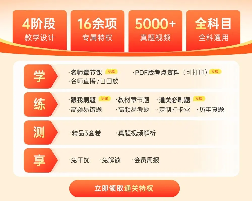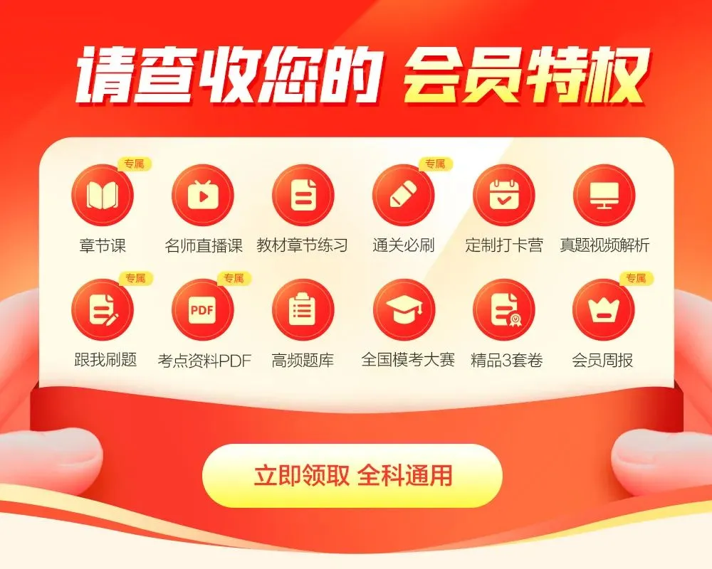 总结前人经验和考题大数据,万题库超级会员,专享学习规划+全科章节课+全科高频数据等14项学习特权,带你科学冲刺!