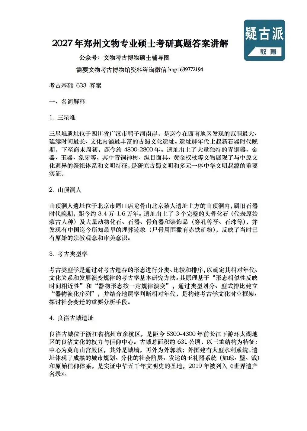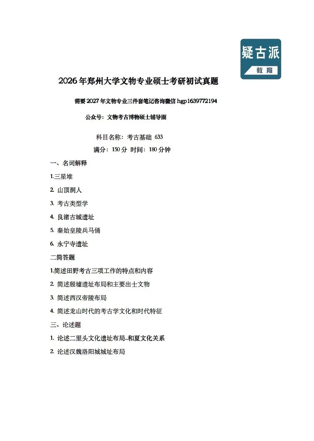 >第三集2026年郑州大学文物考研真题答案讲解视频课