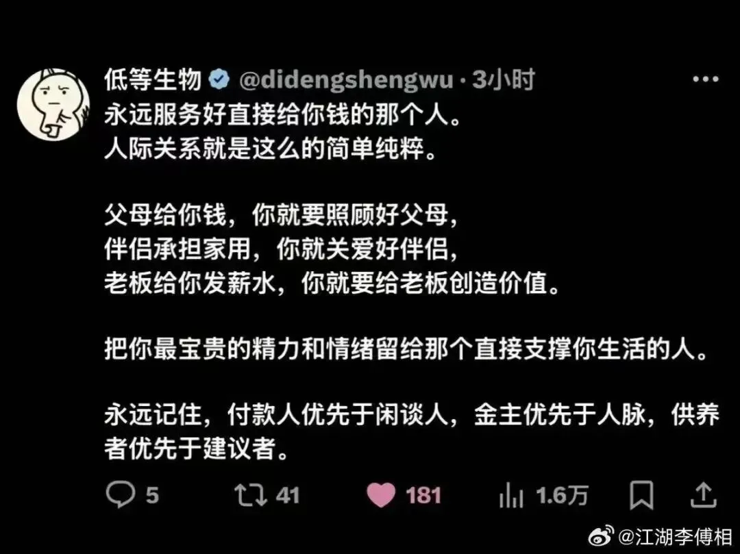 人真的要克制一下自己对别人想法和喜好的纠正欲……别人在某个问题上怎么看、喜欢什么或讨厌什么,其实并不犯法。你的看法、你的喜好,也不是标准答案。不然自己会很痛苦,因为你很快会发现别人居然跟你不一样想,你会感受到强烈的失控感和挫败感。(晏凌羊)