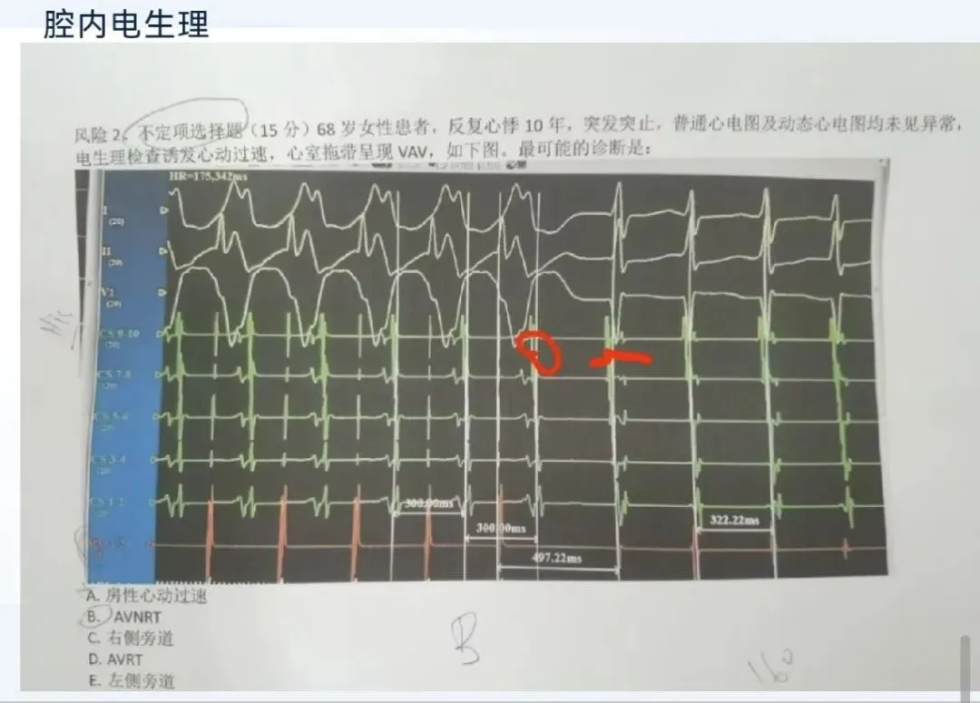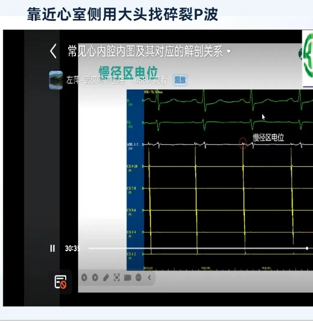 - 慢旁路:标测冠状窦内低幅碎裂电位