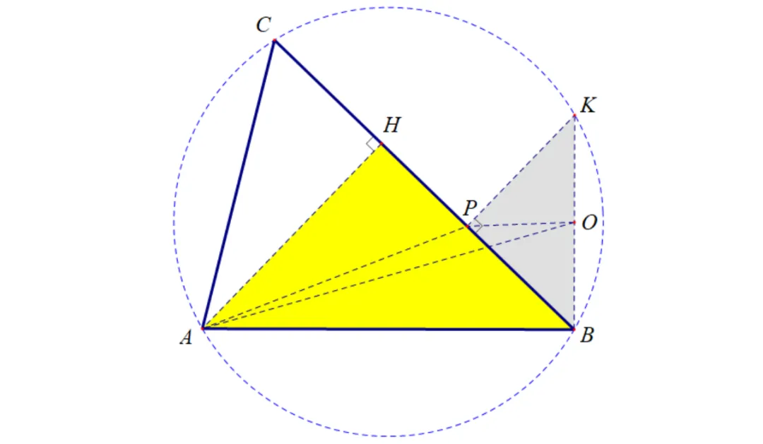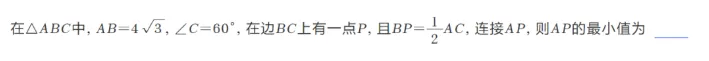 边对角是这个问题的主要特征,宽高比是BP:AH=1:√3,线段AB对应的投影是AH与BH,线段BK对应的投影是PB与PK,投影对应的线段之间互相垂直,各自形成的三角形是相似的,相似比是√3:1,点K是定点,BK是确定的线段,点P在圆上,转化为点圆最值。从上位思想来看,线段背靠的是三角形,考虑给出单一线段时的上位背景是必要的,本题中有∠AHB是直角,得到∠KPB是直角,再次得到直角的上位图形圆,题目的底层逻辑就显得非常自然。技巧层面概况:宽高定比一线三,斜中引入定江山。
