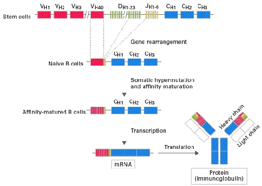 SHM改变了抗体的抗原结合区,突变后,具有更高亲和力BCR的B细胞更容易受到刺激和增殖。因此,SHM的结果是能产生更多对同源抗原有高亲和力BCR的B细胞,这个过程称之为亲和力成熟。