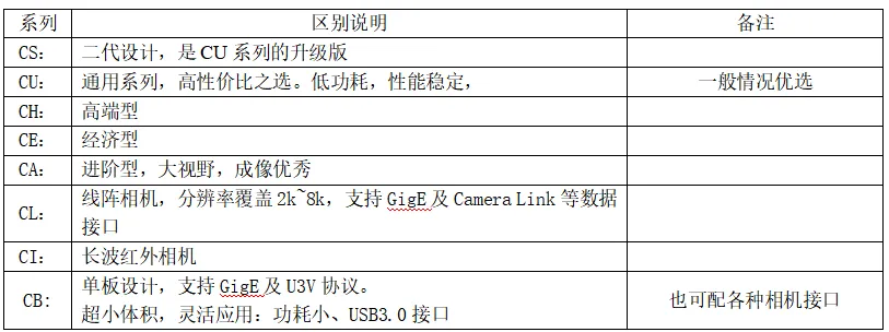 自动化行业中,海康相机用的较多,此处将海康的型号归纳了一下,如下所示。