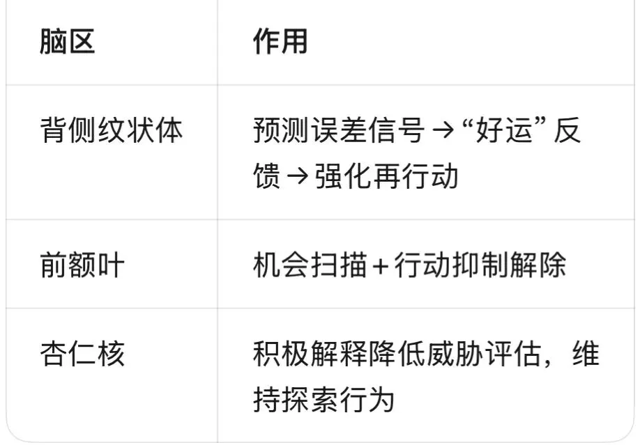 神经机制涉及背侧纹状体预测误差信号与前额叶机会扫描。文章亦用数据驳斥常见迷思(运气=彩票、外向才幸运、积极思考即可)。